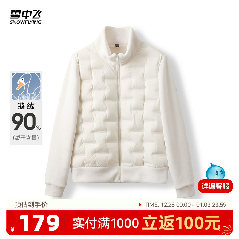 雪中飞秋季新款女士摇粒绒外套2025时尚轻薄鹅绒运动夹克羽绒上衣