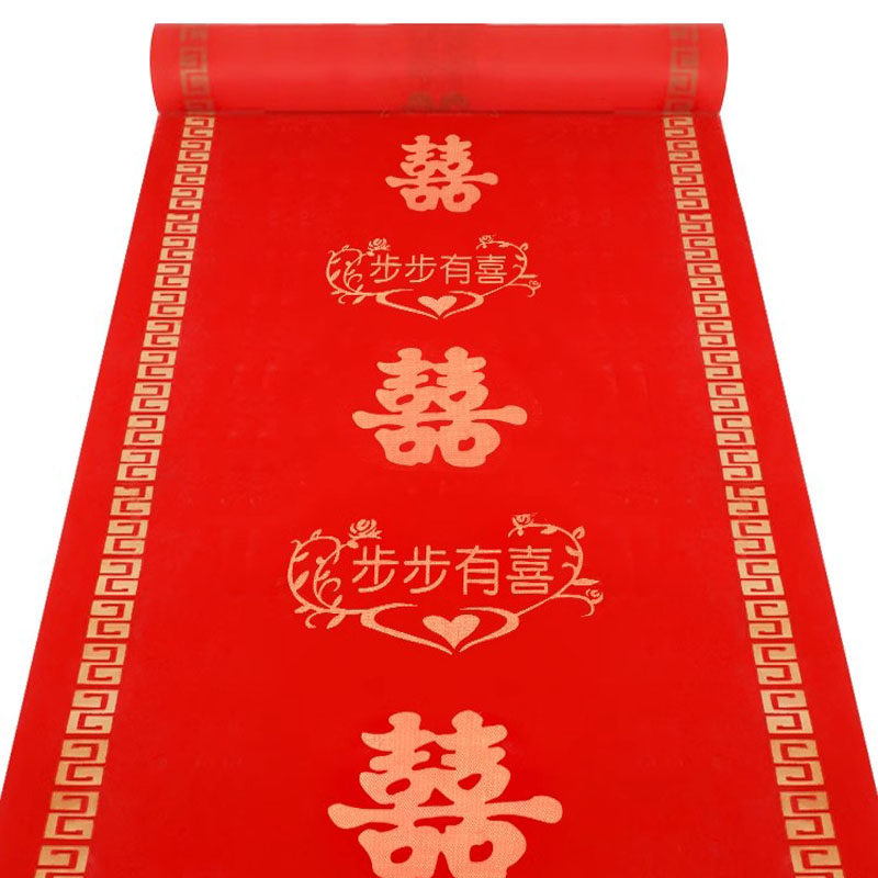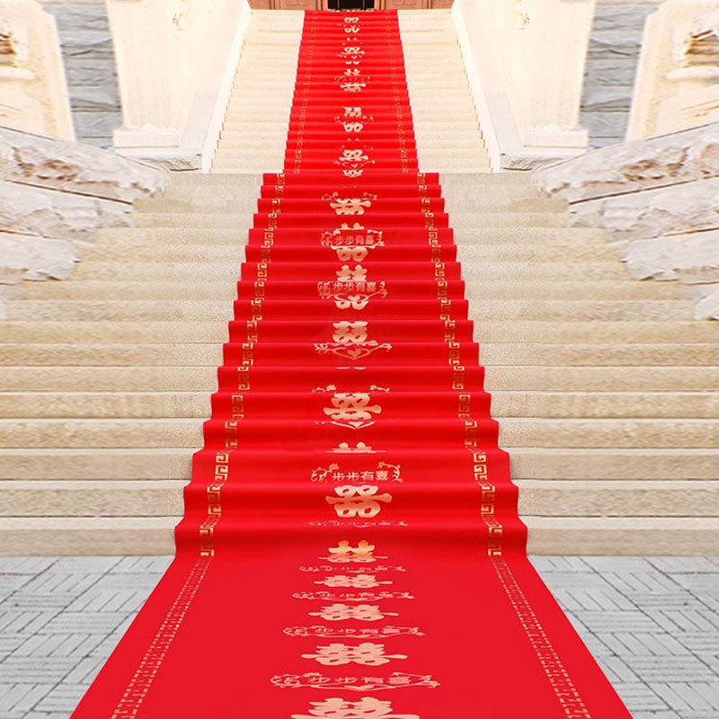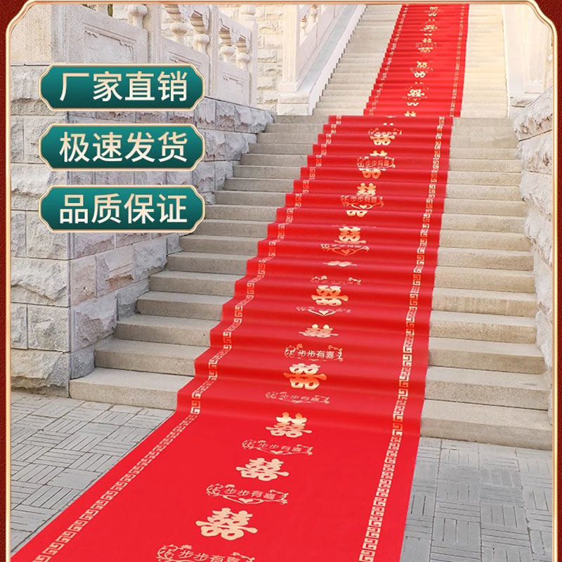 结婚红地毯一次性楼梯门口加厚无纺布喜字婚庆用品红色大地毯
