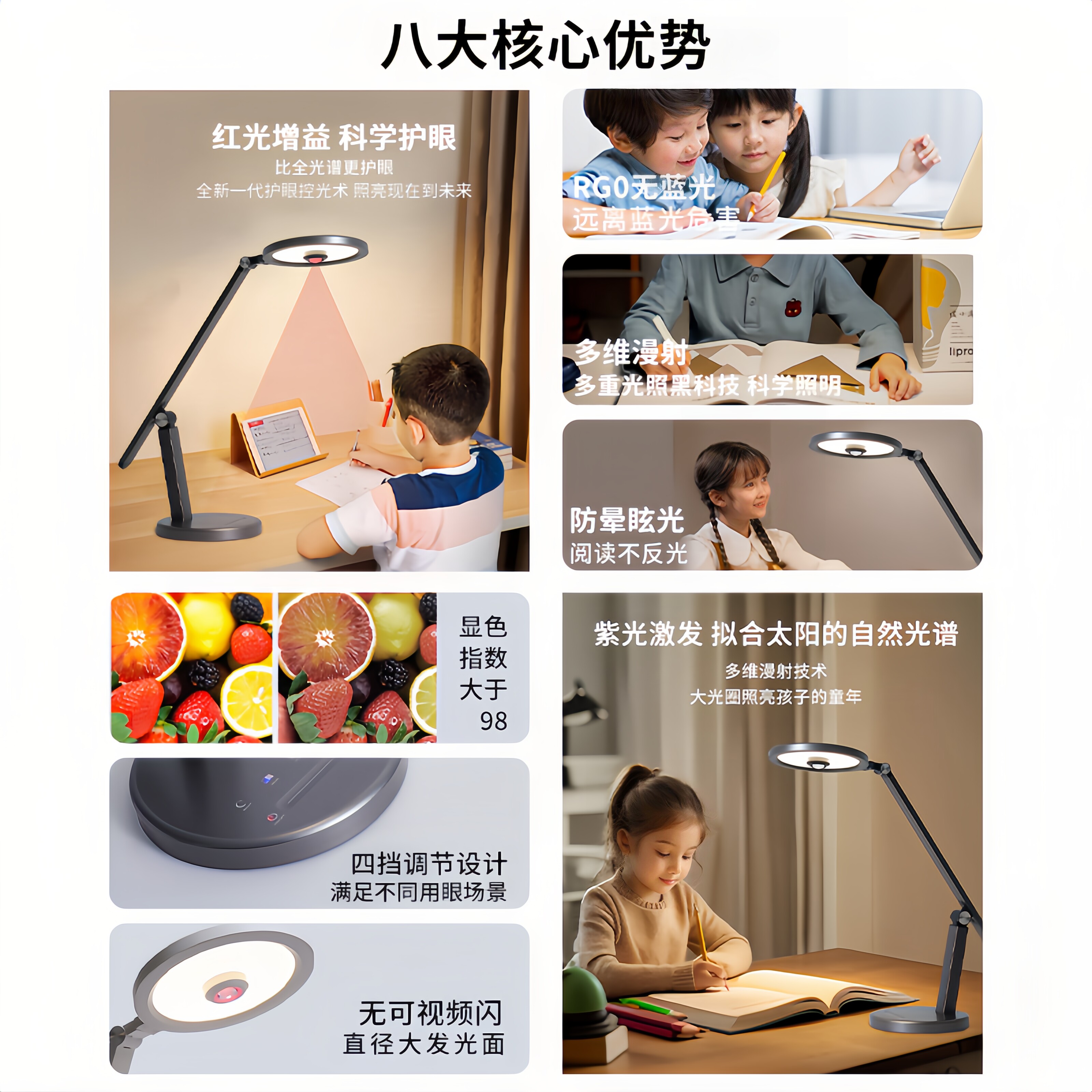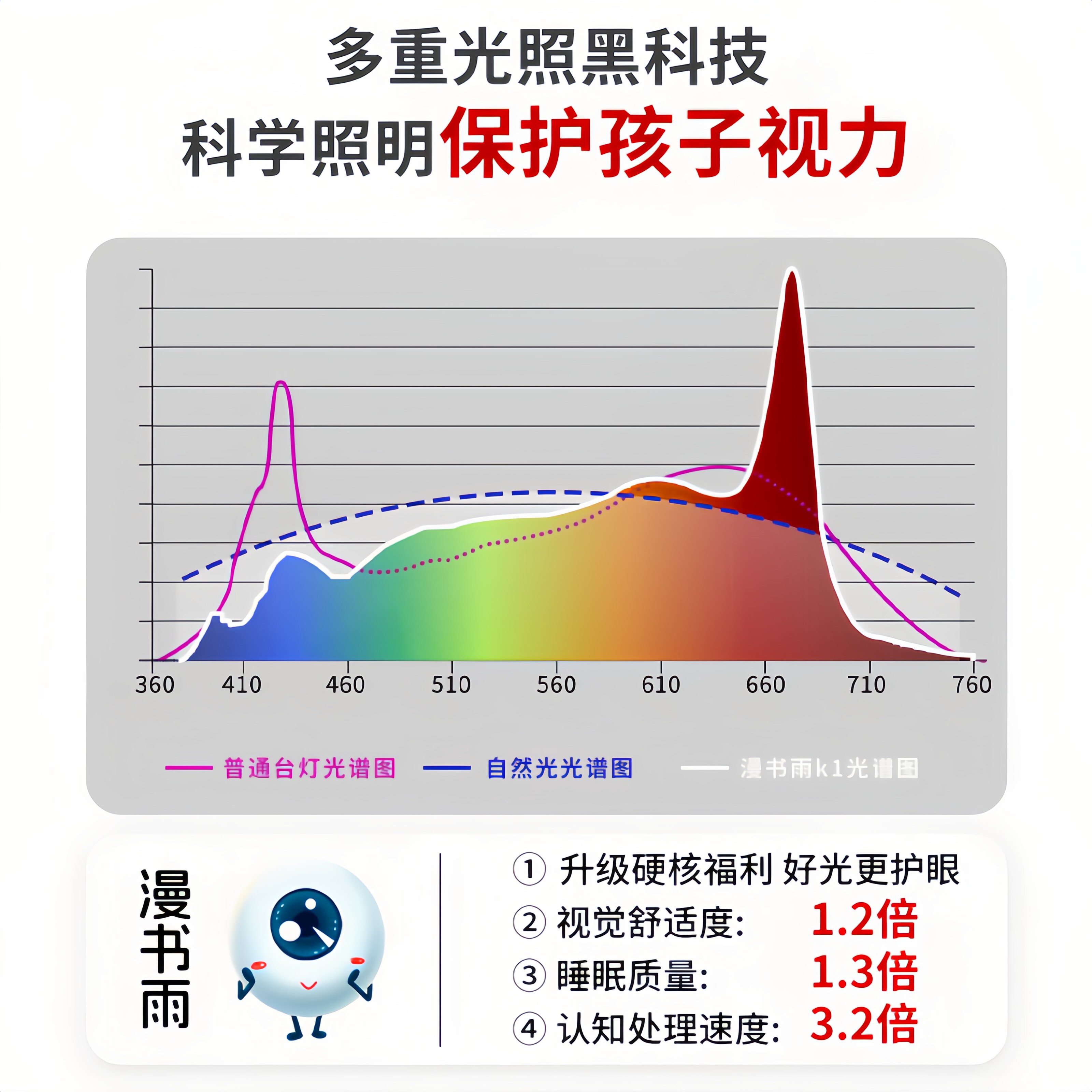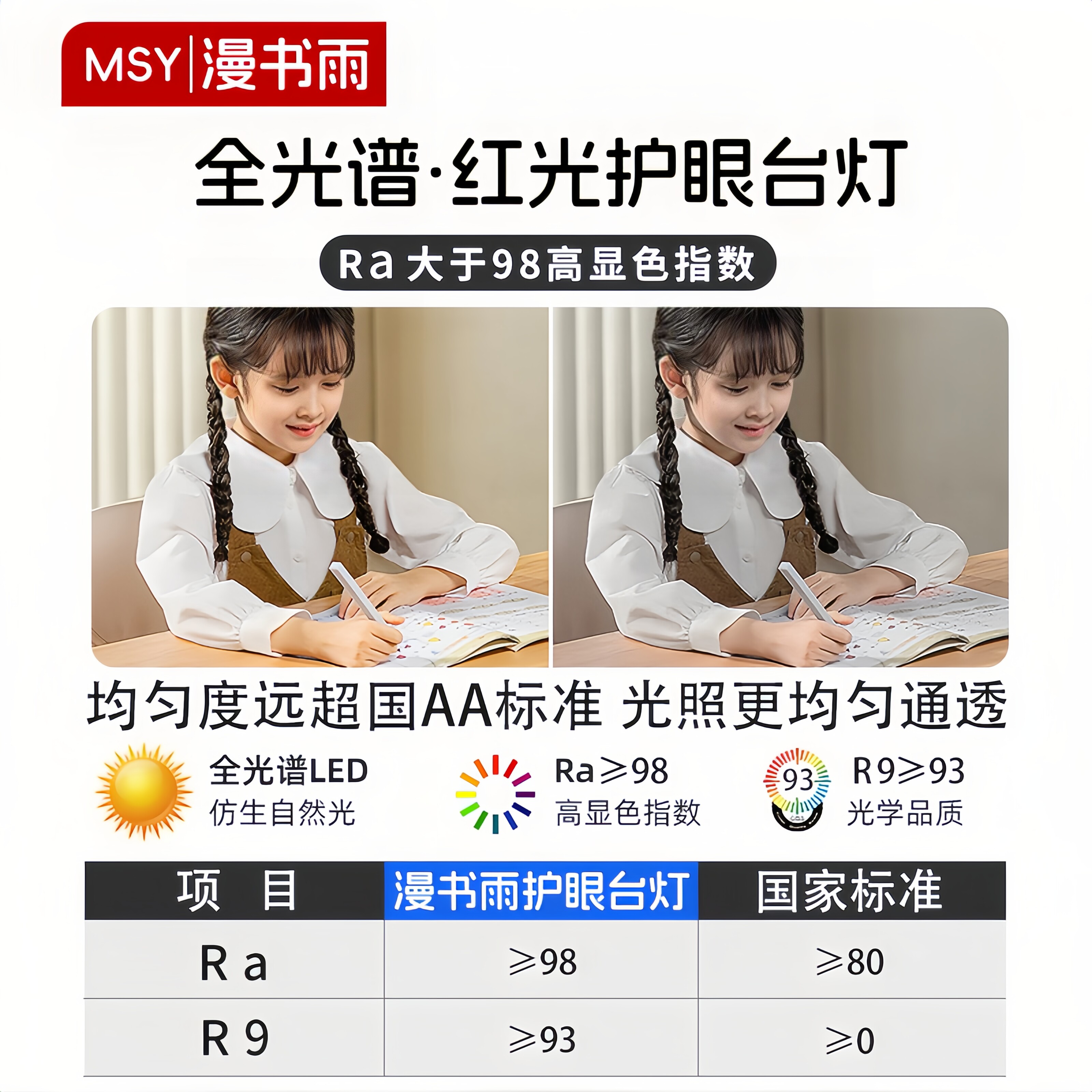 漫书雨护眼台灯K1学生学习专用红光增益儿童书桌全光谱紫光台灯