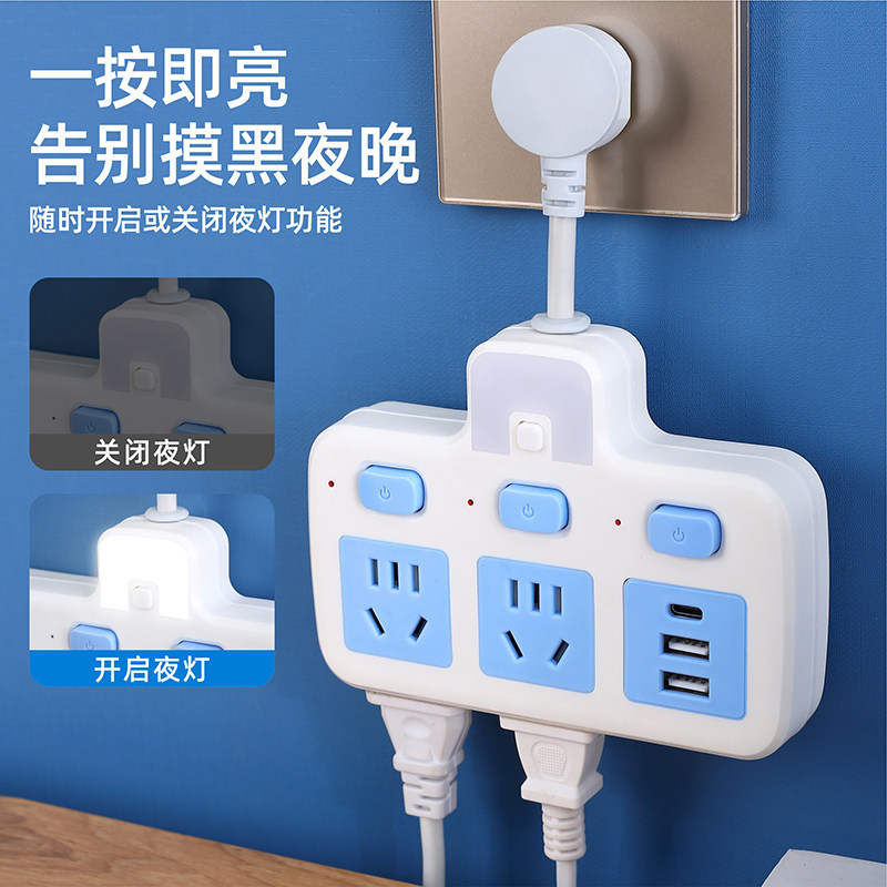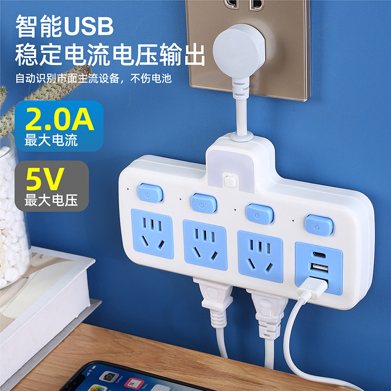 插座转换器面板无线排插插板插排带usb一转插头多插位充电多功能