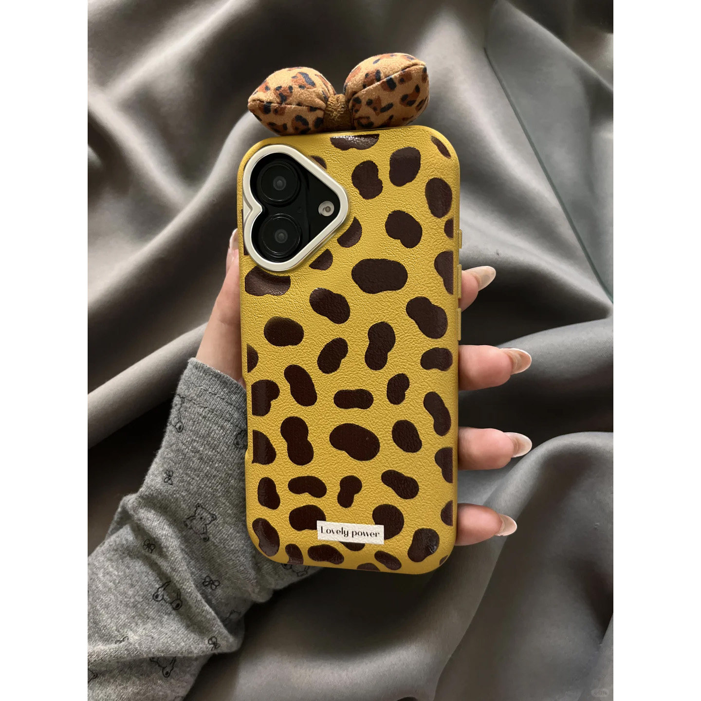 豹纹蝴蝶结适用苹果16promax手机壳iphone14pro新款13皮纹金属框12个性11保护套15promax全包防摔小众辣妹壳