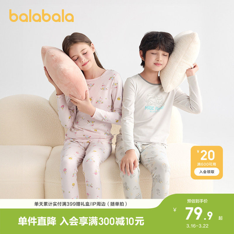 巴拉巴拉女童内衣套装棉春秋新款薄小童打底棉毛衫宝宝中大童睡衣