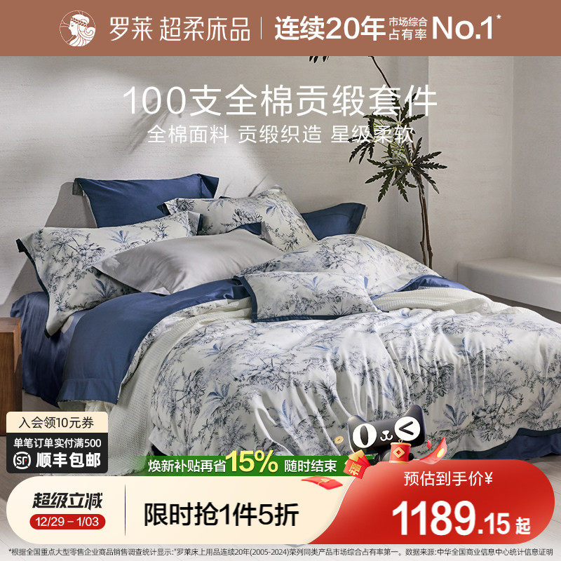 罗莱家纺25秋冬新品100支新疆棉四件套全棉贡缎双人床套件被套