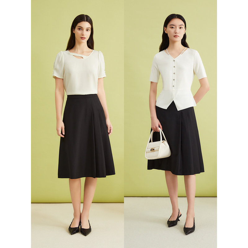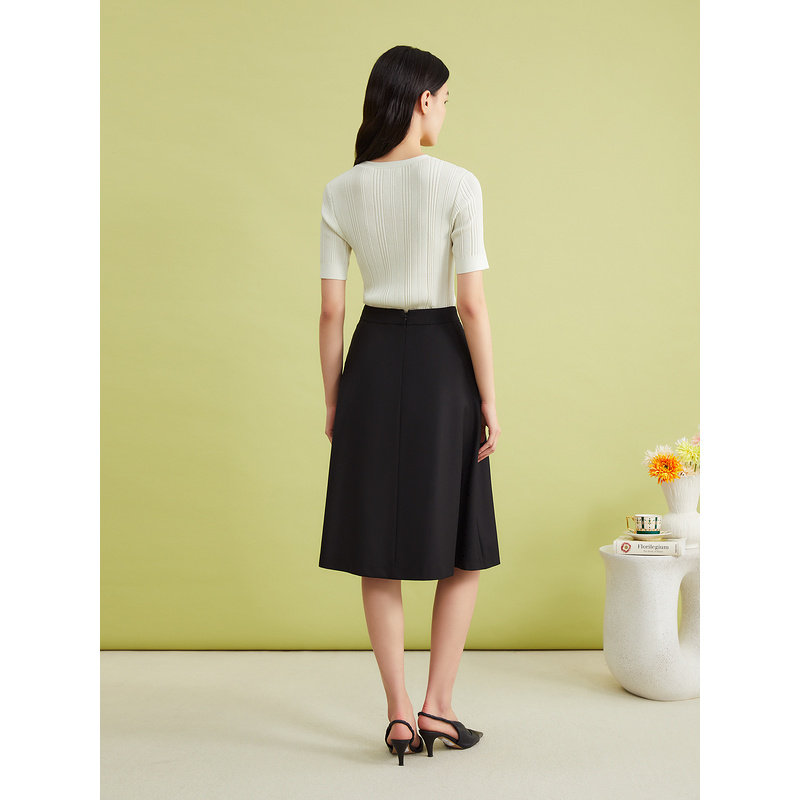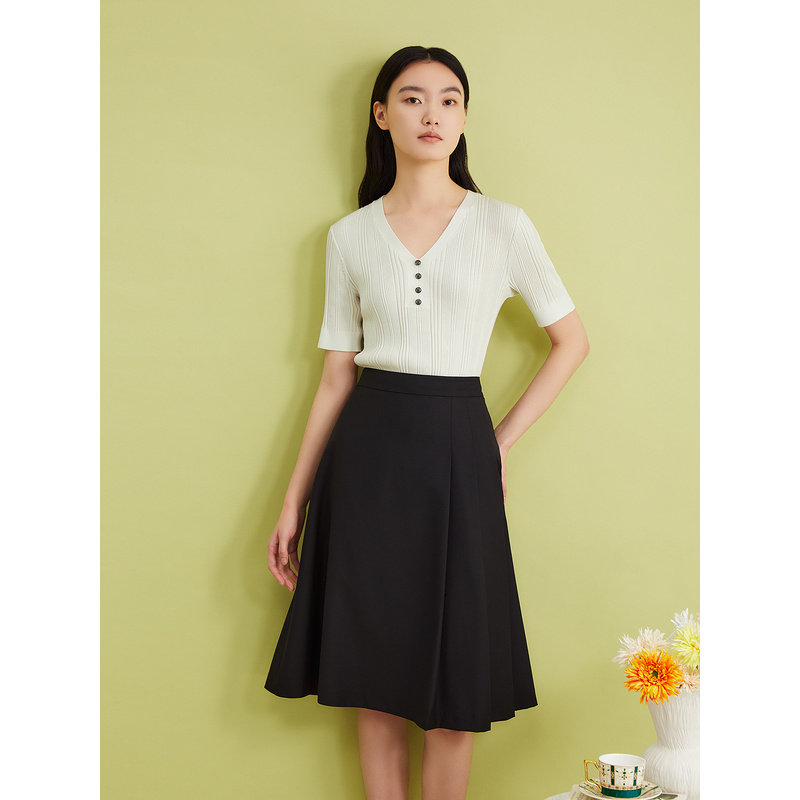 YINER音儿专选女装夏季时尚羊毛混纺法式小黑裙高腰半身裙