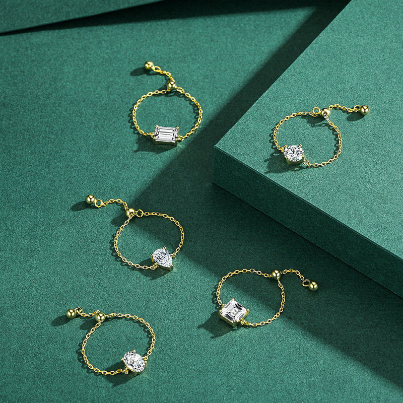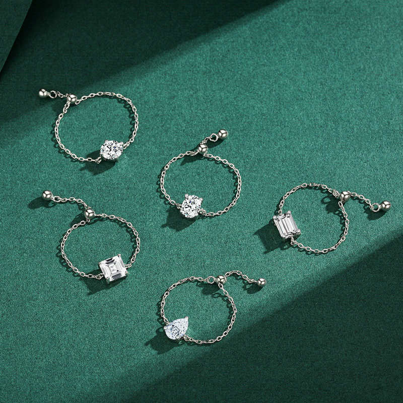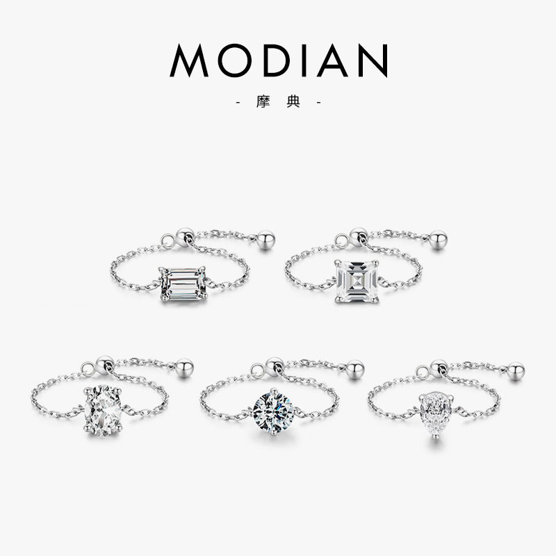 s925银轻奢镶嵌仿真钻锆石戒指女开口欧美ins潮银饰品可调节链戒