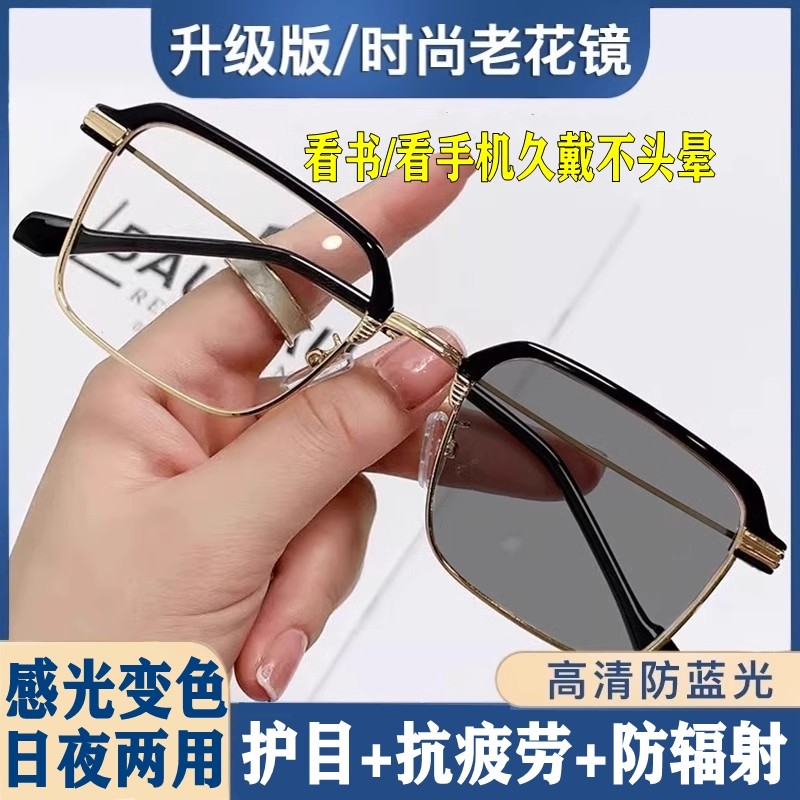 感光日夜两用高清老花镜男士变色新款防蓝光看近专用品牌老光眼镜