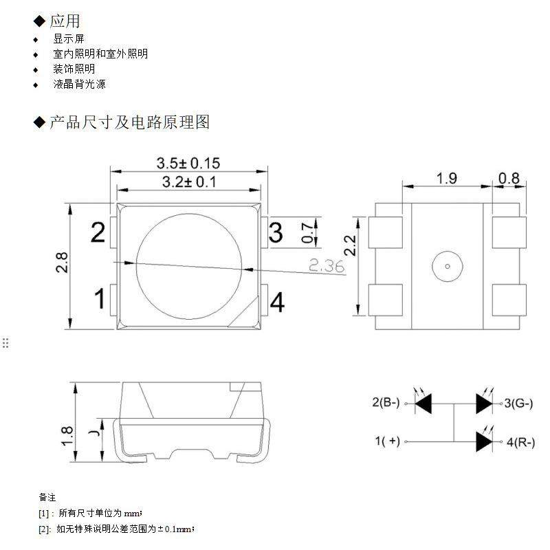 3528RGB灯珠四脚全彩黑面贴片led灯珠户外显示屏专用3528幻彩灯珠