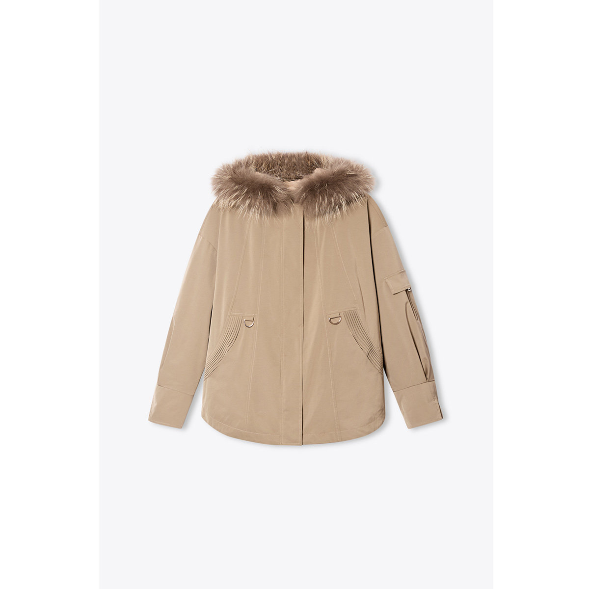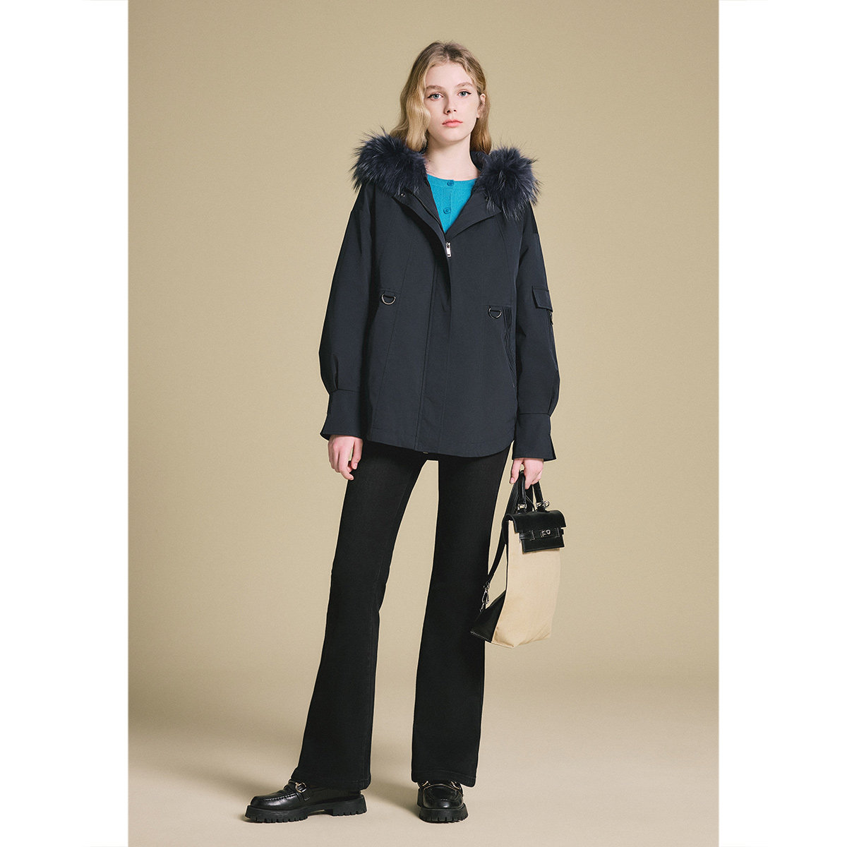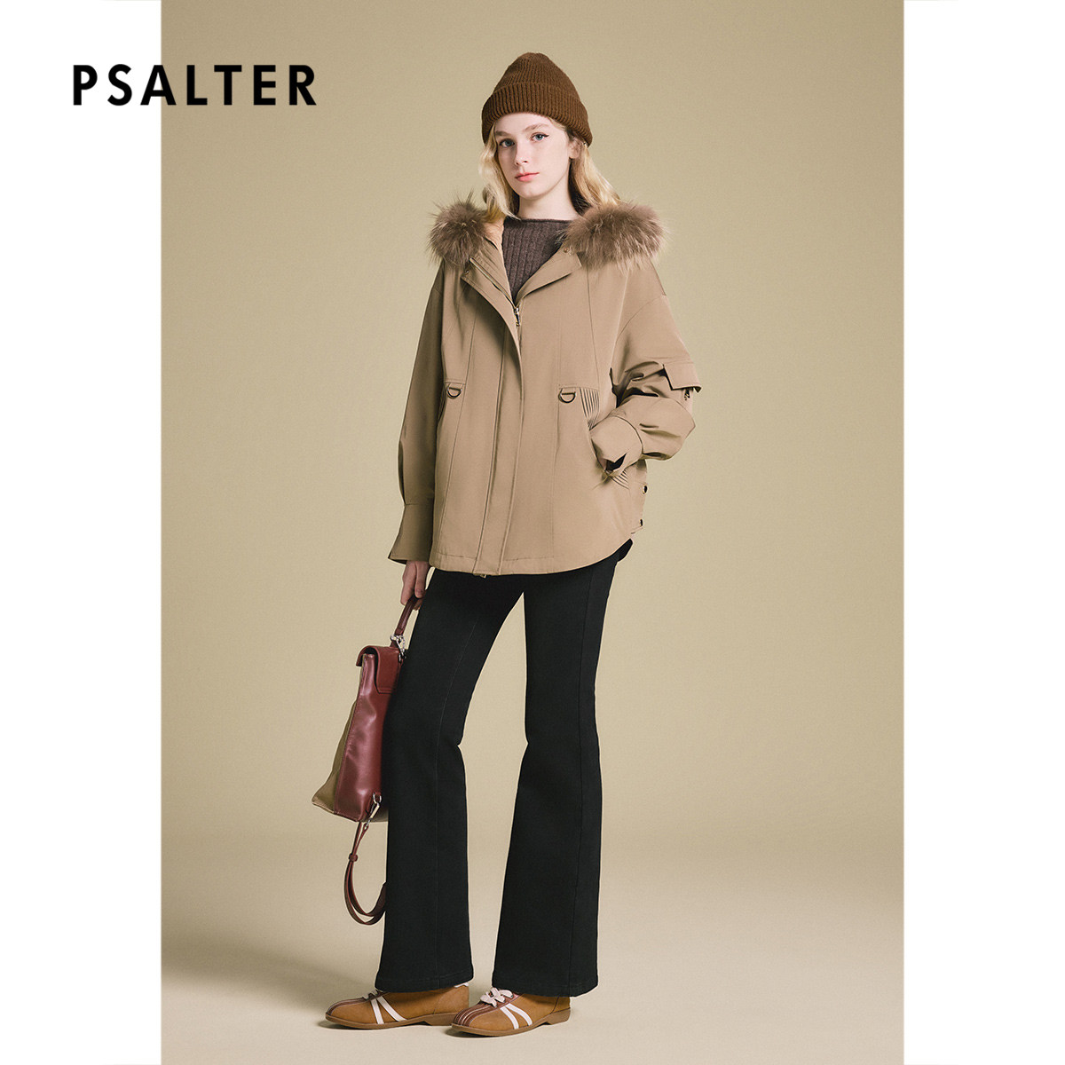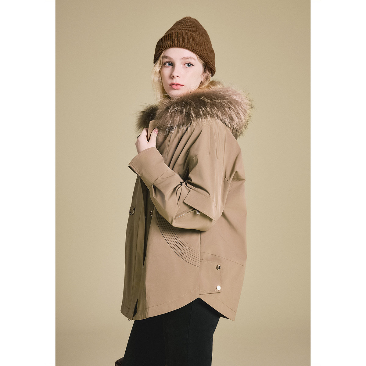 诗篇专选貉子毛领连帽可拆卸白鹅绒内胆派克服羽绒服冬款
