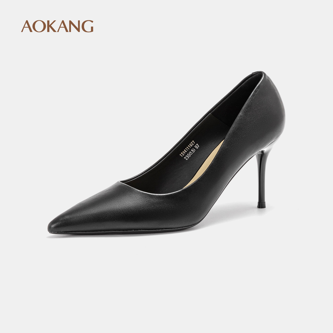 奥康女鞋春秋季新款法式简约大气尖头高跟鞋细跟女士宴会通勤单鞋