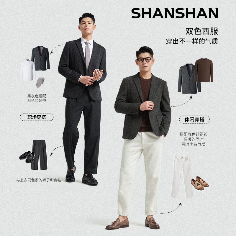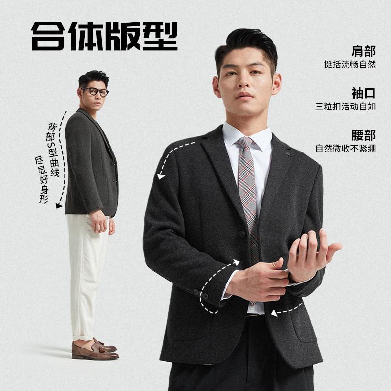 SHANSHAN杉杉品牌羊毛西装外套男商务单西2025春秋季新款休闲西服