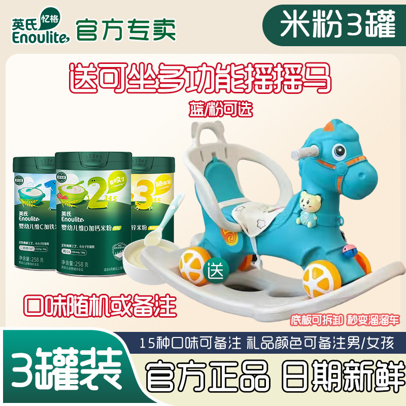 英氏米粉3罐送车 6个月婴幼儿高铁营养米糊1段3段1岁宝宝辅食罐装