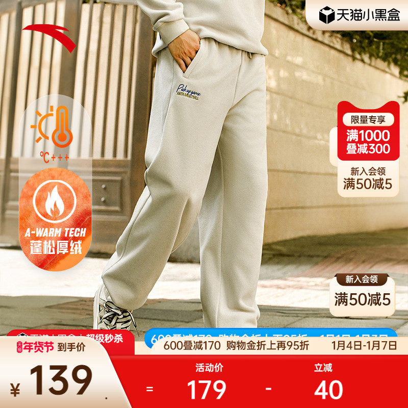 安踏摇粒绒长裤男士冬季新款加绒保暖针织休闲运动裤宽松束脚卫裤