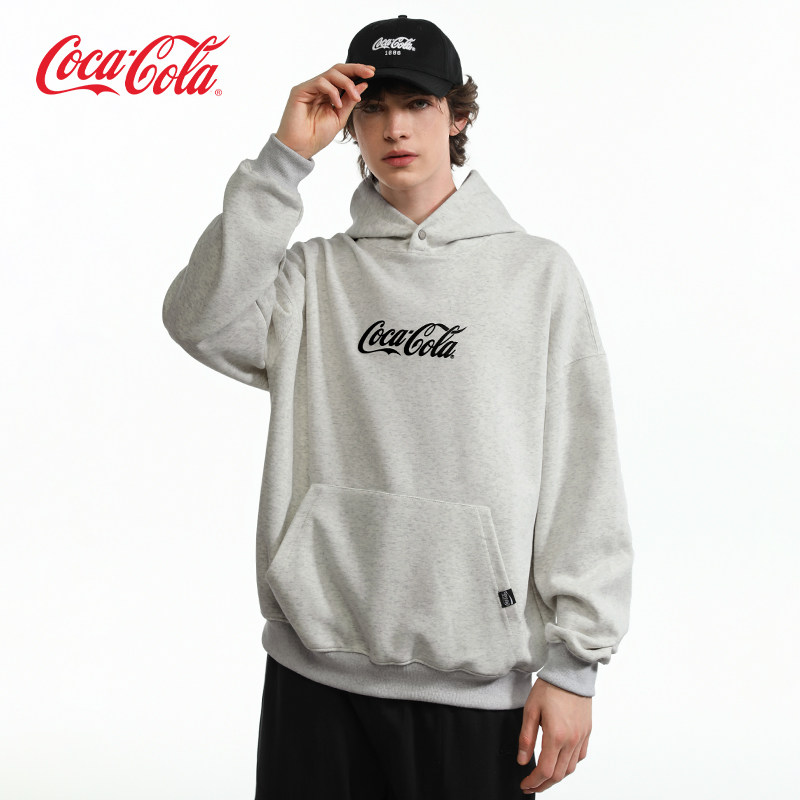 Coca-Cola可口可乐 基础纯色字母Logo印花落肩秋冬连帽情侣卫衣