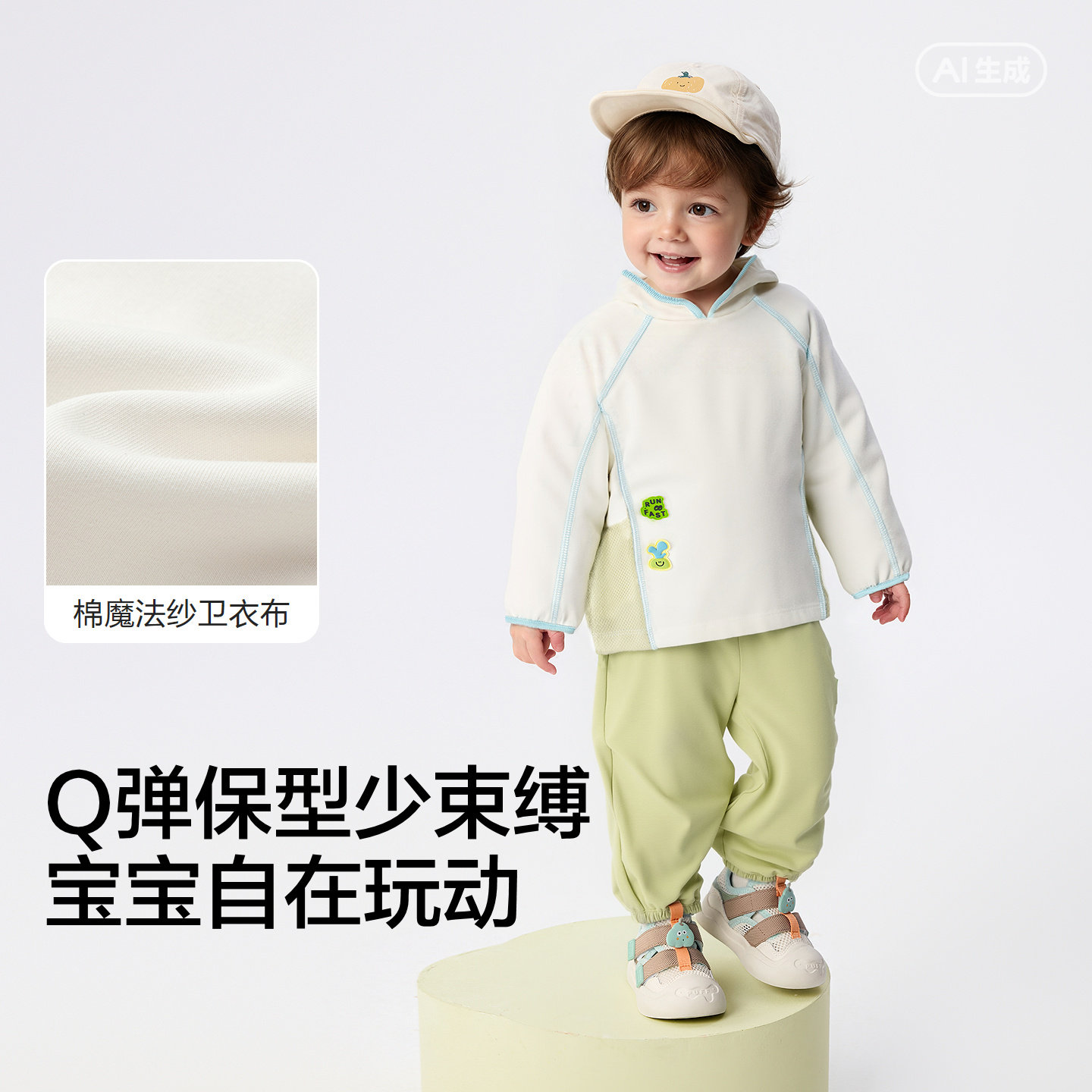 连帽卫衣套装,萌趣印花图案