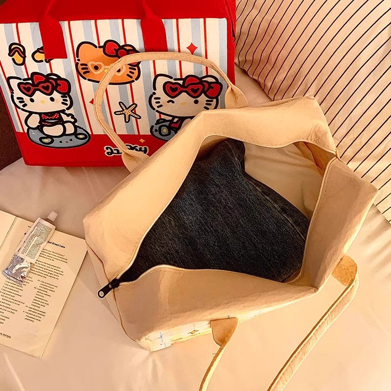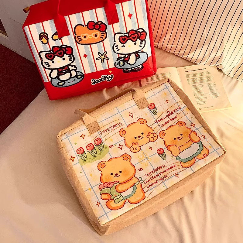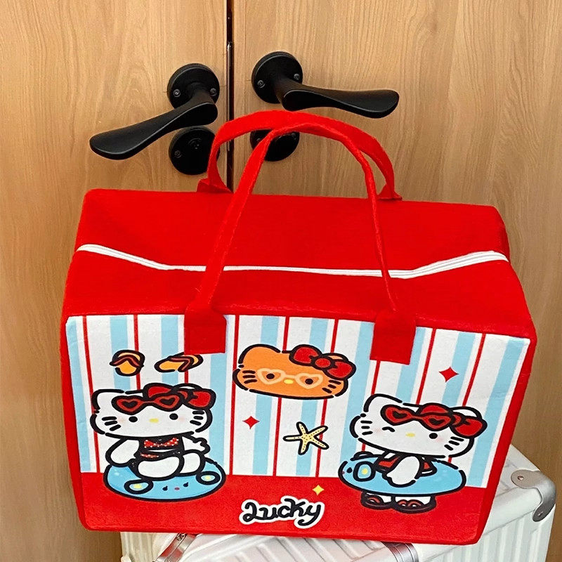 卡通kt旅游收纳大容量手提袋旅行李包带拉链轻便可套拉杆箱毛毡包