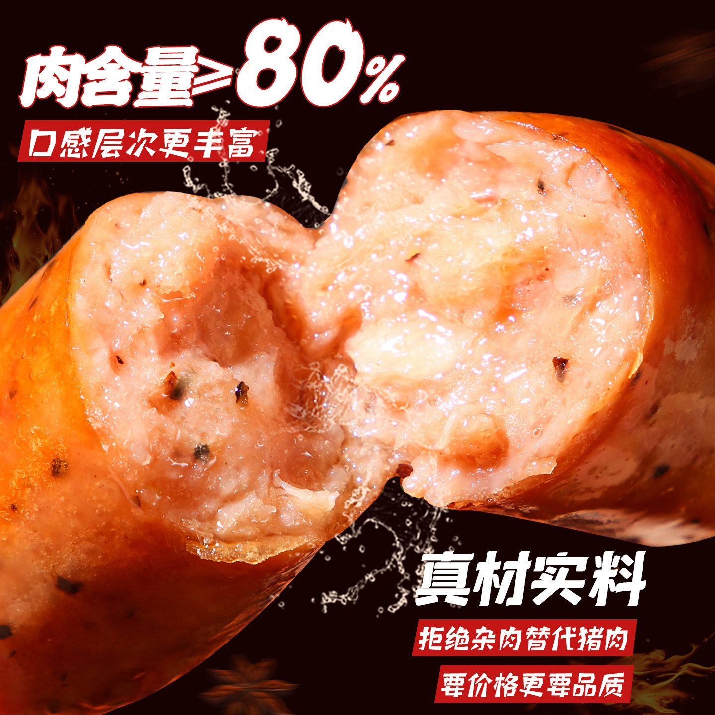 皇家小虎火山石脆皮烤肠纯肉香肠热狗空气炸锅食材地道肉肠黑胡椒