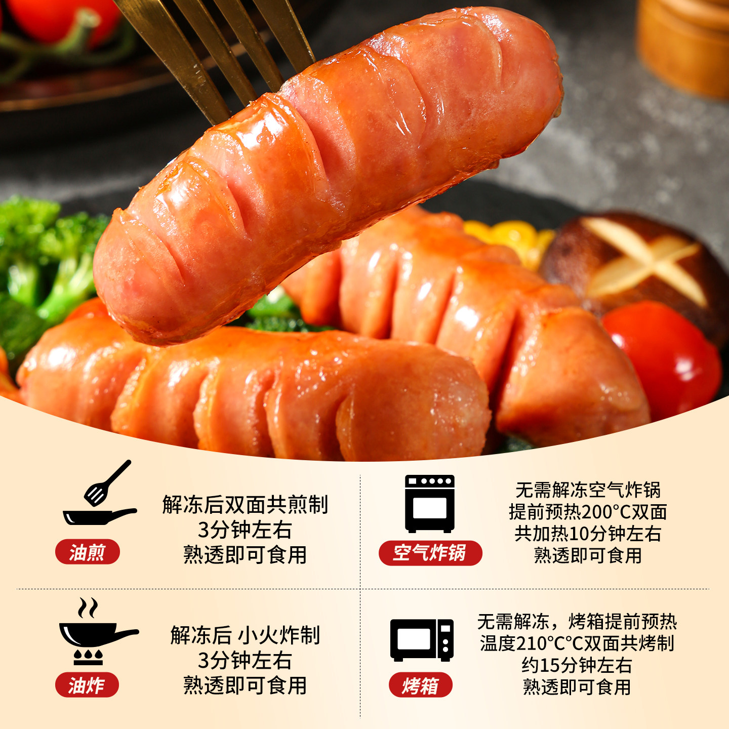 皇家小虎一口爆汁肠德式烟熏蜜汁肠脆皮烤肠空气炸锅食材小肉香肠