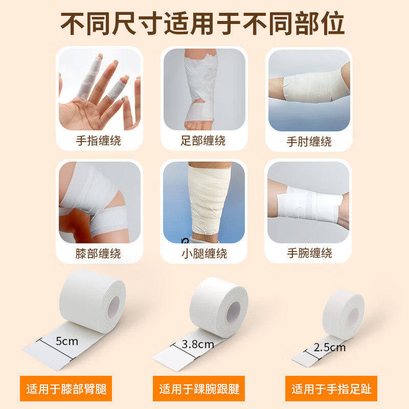 运动胶带白贴布打脚固定胶布篮球足球脚踝膝盖髌骨带攀岩手指绷带