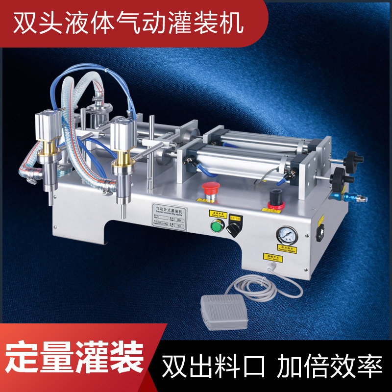 冠驰卧式气动双头液体灌装机 酒水饮料牛奶定量分装机 酱油醋矿泉水灌装机