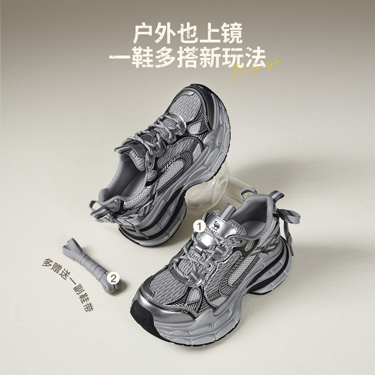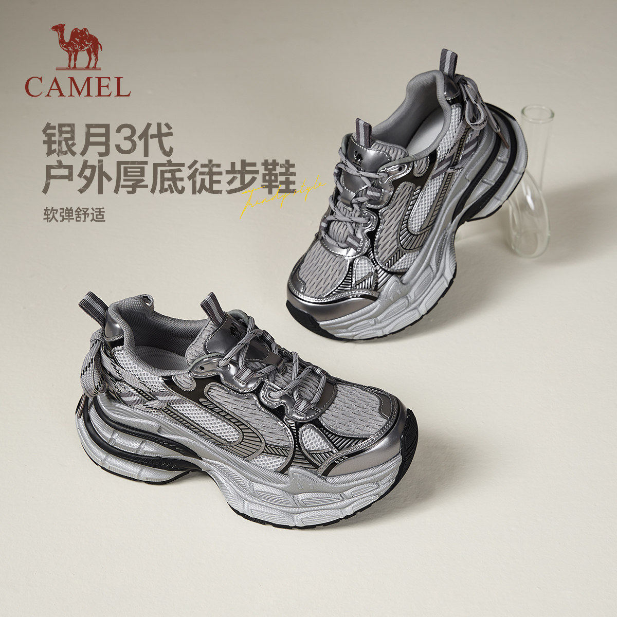 【迪丽热巴同款】骆驼银月3代老爹鞋女2026新款厚底户外休闲鞋女