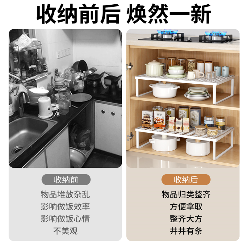厨房橱柜内置物架柜子分层架台面隔板碗碟调料品锅具灶台下收纳架