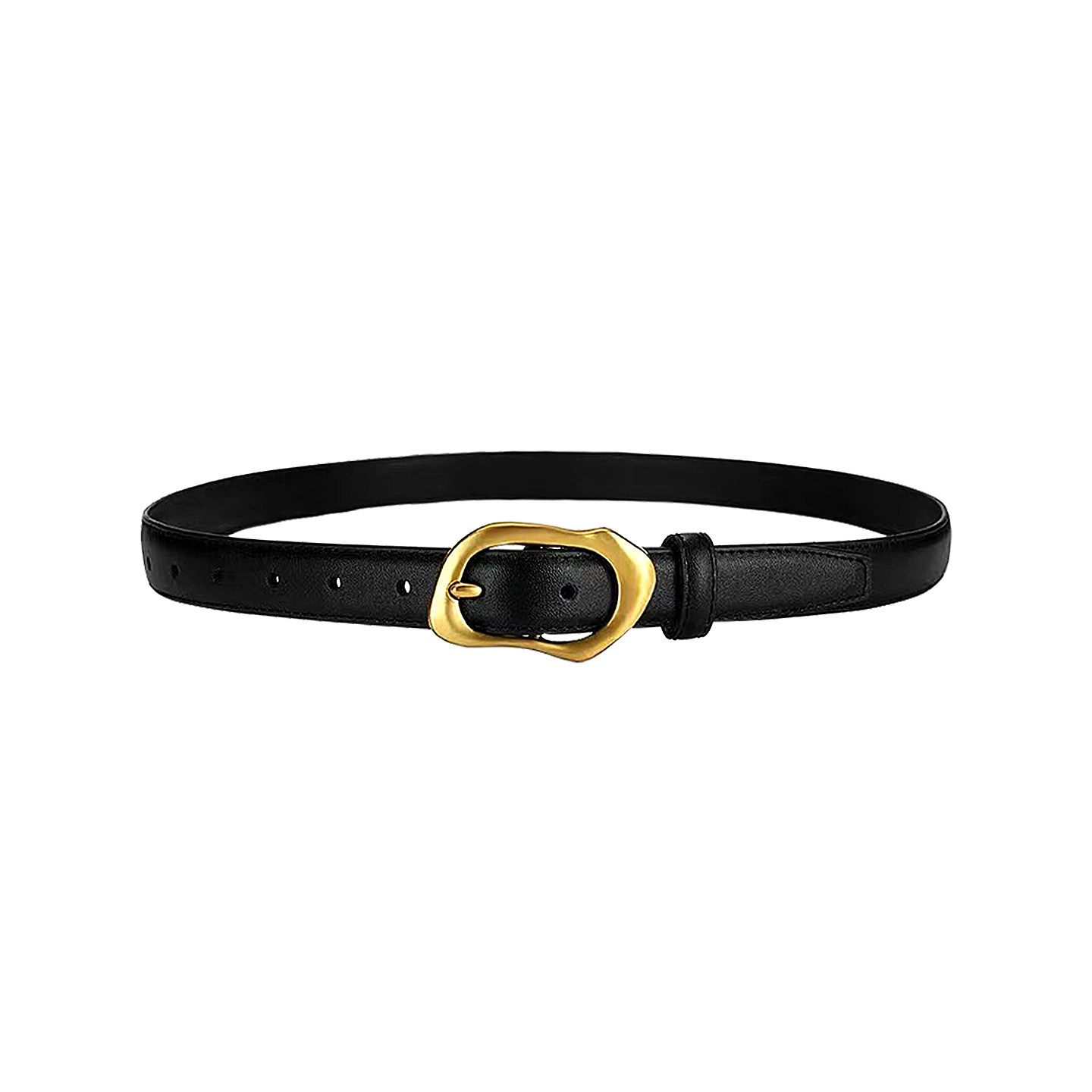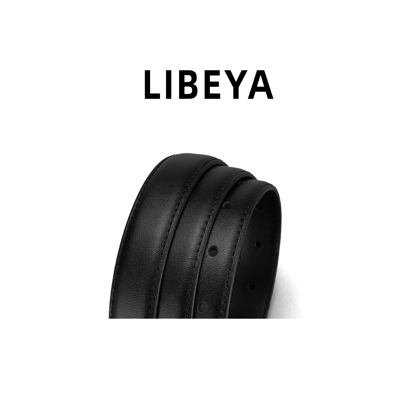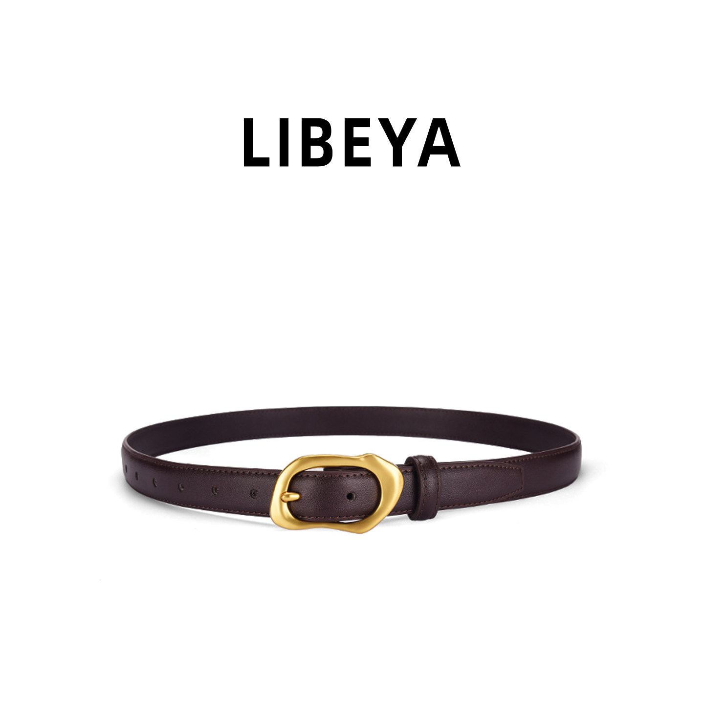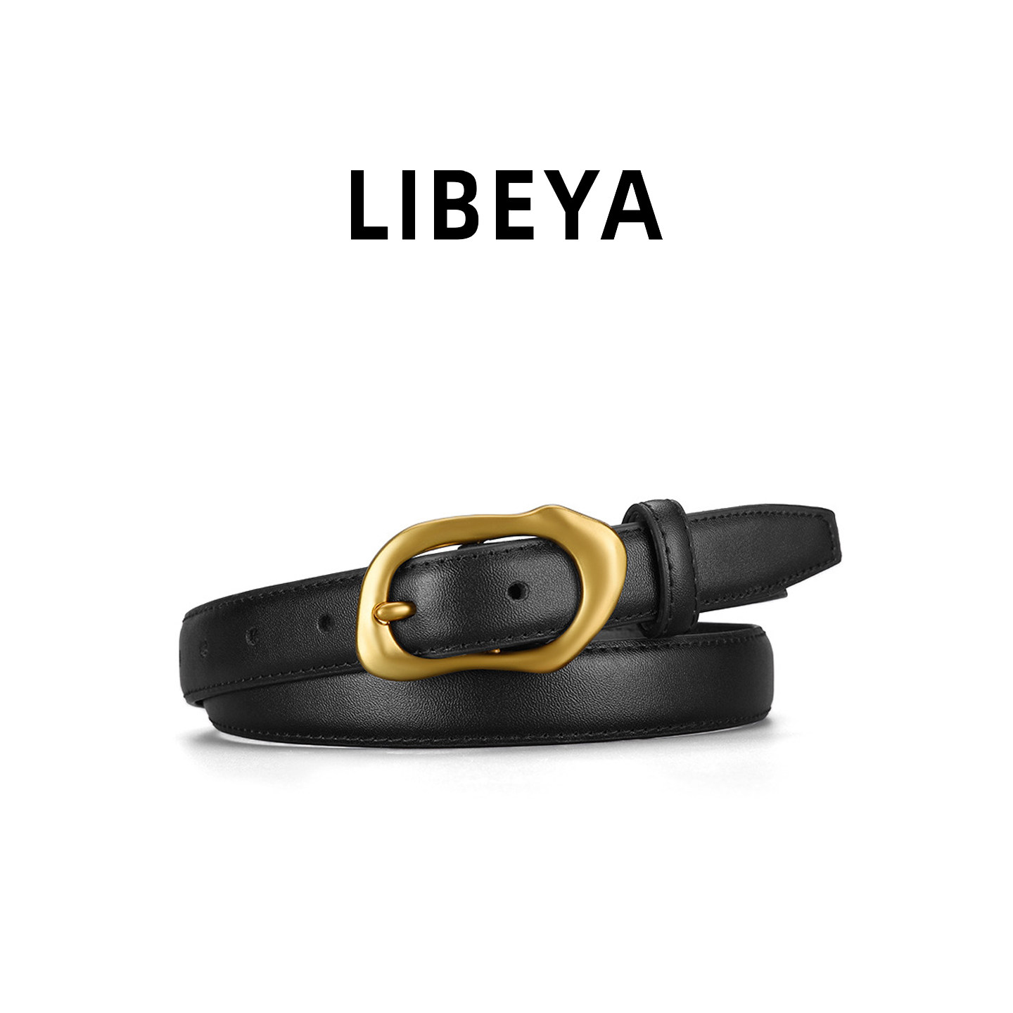 LIBEYA真皮细腰带女黑色金扣设计感小众百搭配牛仔裤皮带牛皮裤带