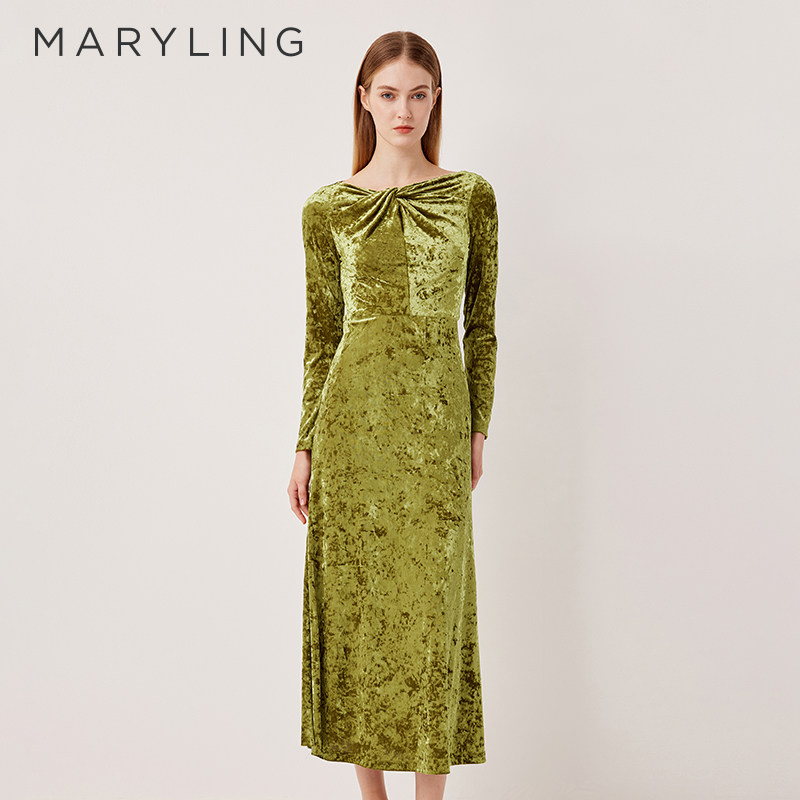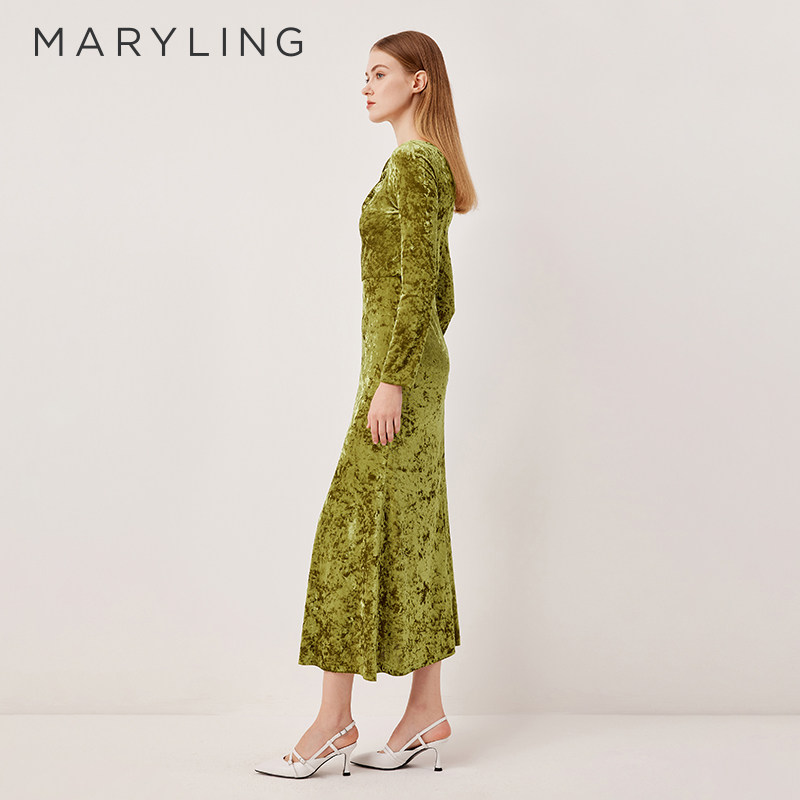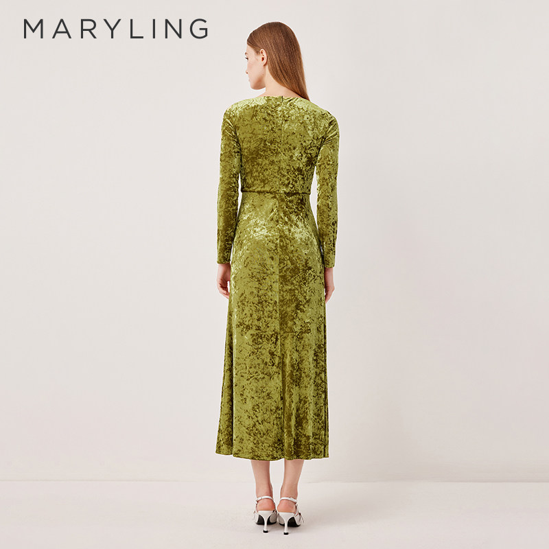 MARYLING玛俪琳2025初秋新品金色丝绒长款礼服连衣裙A1FFW68010