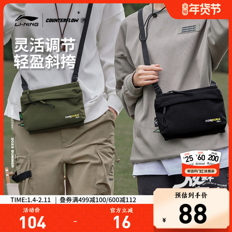 李宁CF溯放肆趣野斜挎包男士包女士包户外旅游休闲通勤学生运动包