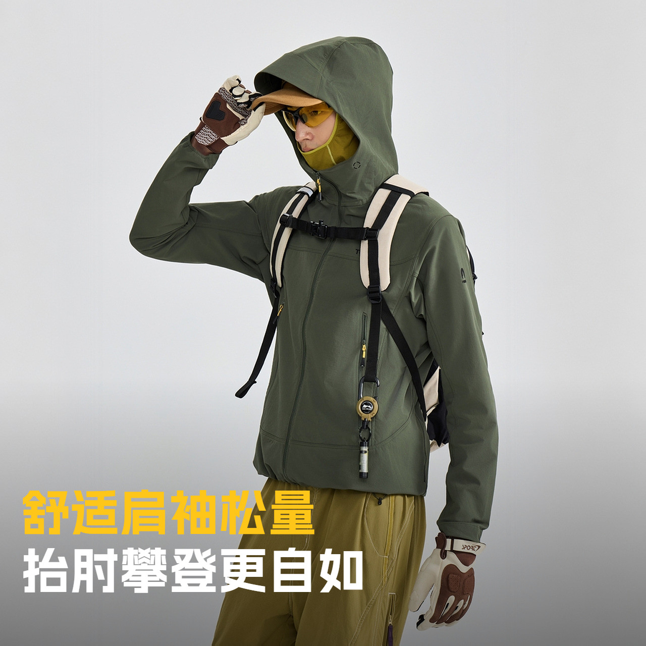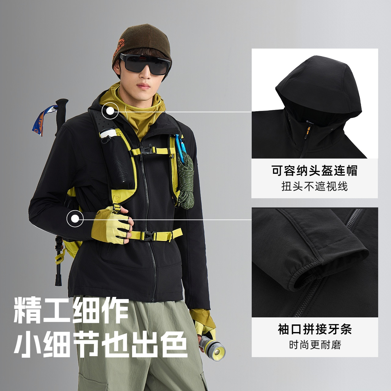 骆驼户外冲锋软壳衣外套男25秋冬加绒连帽夹克防风防水徒步登山服
