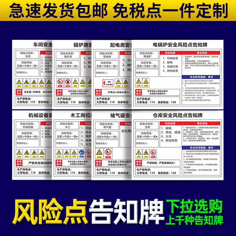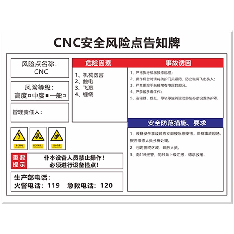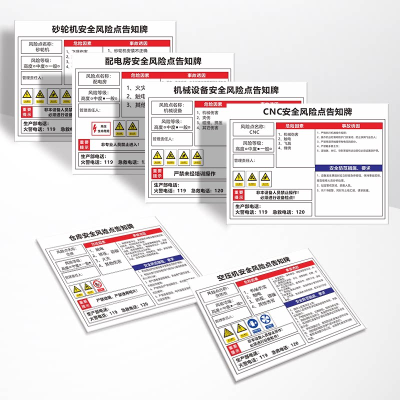 安全风险点告知牌卡机械设备配电房机床注塑机空压机警示牌工厂生产车间仓库有限受限空间职业危害告示标识牌