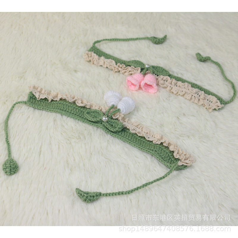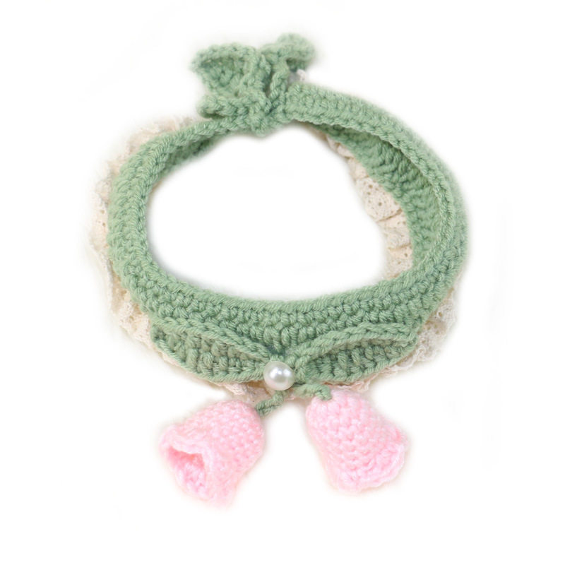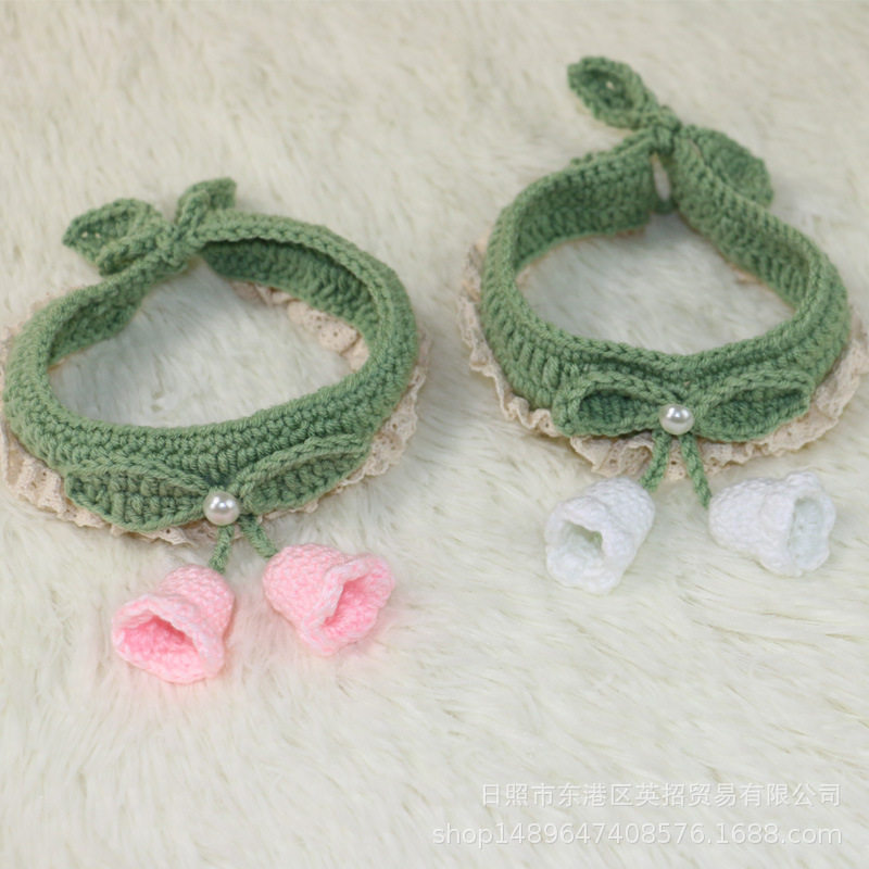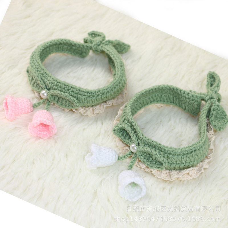 手工钩织毛线猫咪项圈可爱铃兰花朵围脖狗狗宠物脖圈口水巾领结