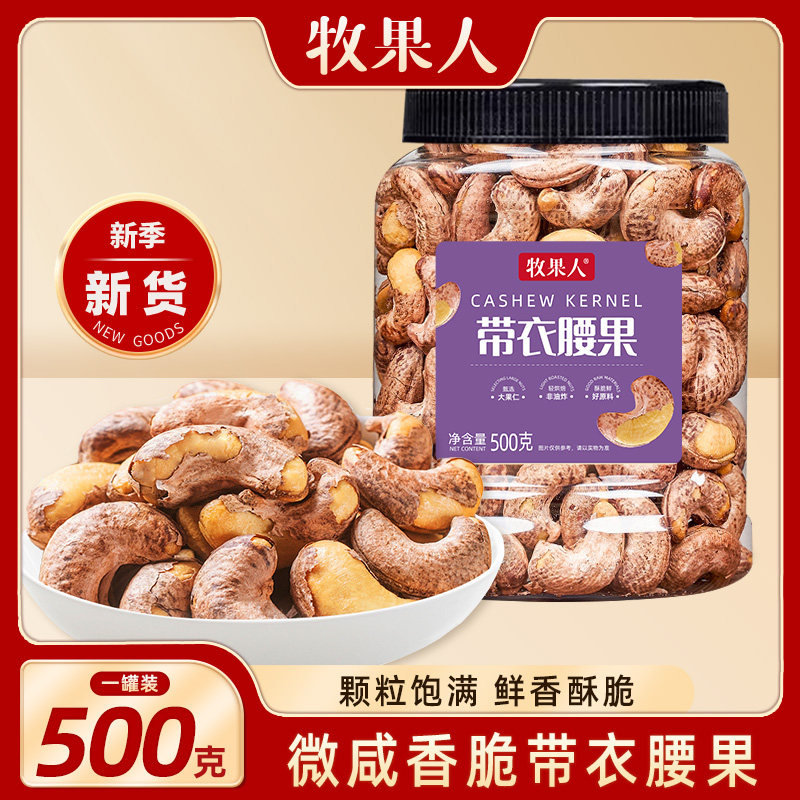 牧果人新货越南带衣腰果原味盐焗坚果干果零食年货罐装健康开心果