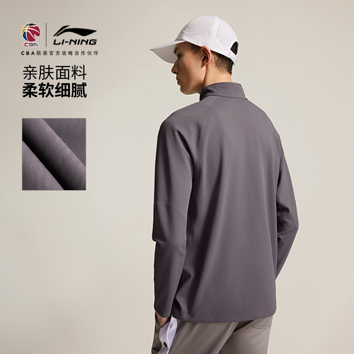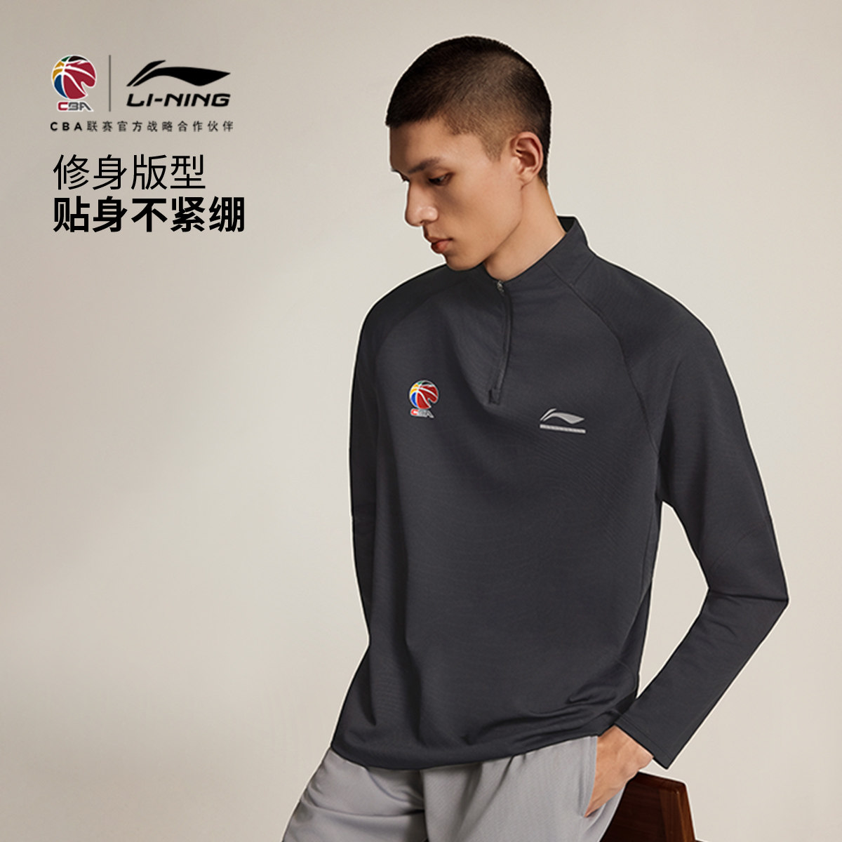 李宁长袖T恤男士官方新款篮球男装半拉链立领上衣冬季针织运动服