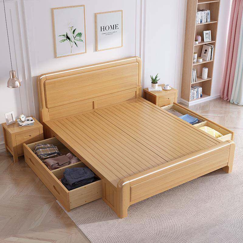 榉木全实木床榫卯结构1.8米双人床1.2m儿童床1.5米单人主卧高箱床