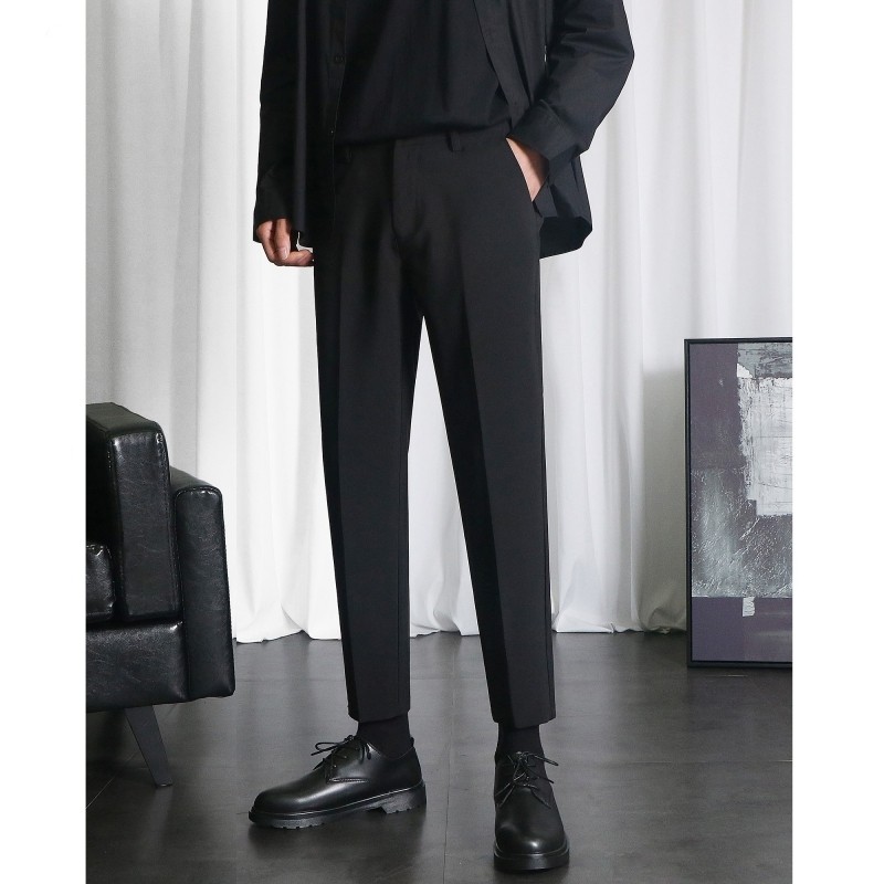 OWNR 黑色小西裤男修身直筒九分裤加绒休闲裤秋冬新款垂感西装裤