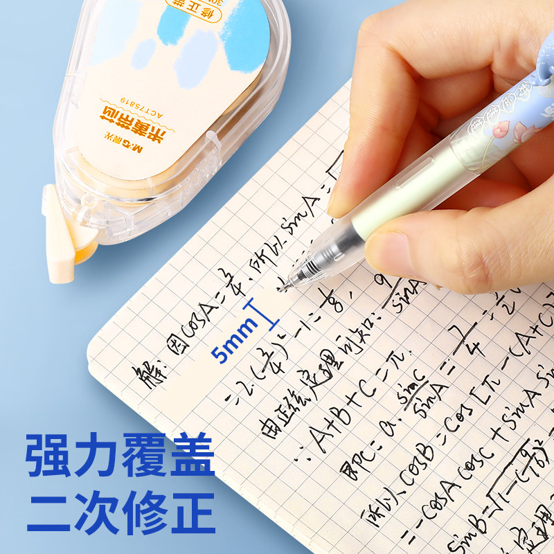 晨光隐形修正带小学生专用大容量实惠装涂改带米黄色护眼改正带顺滑静音原纸色改字带高颜值初中生文具修改带