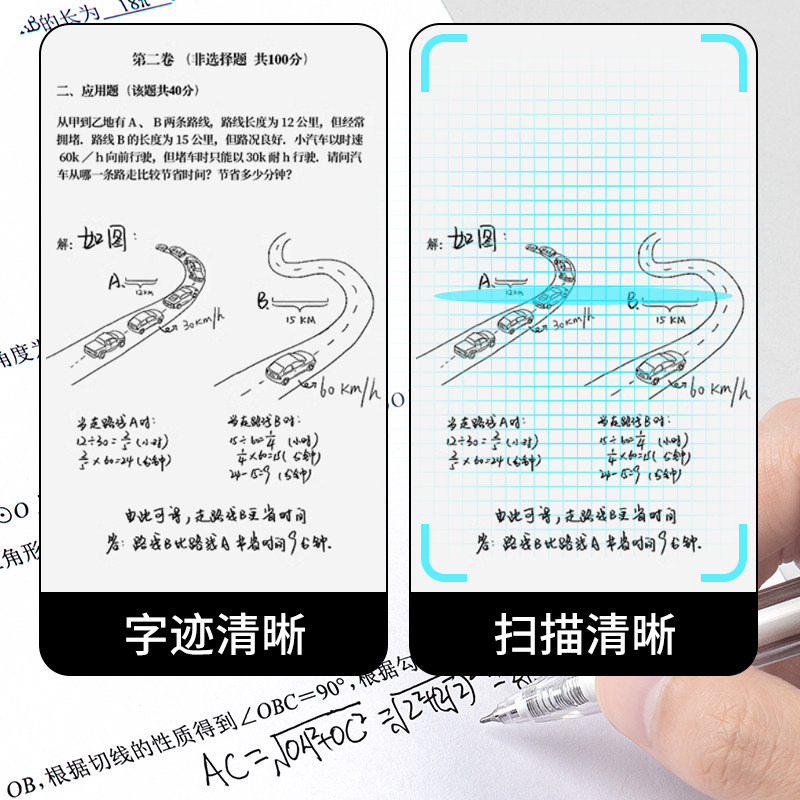 晨光按动中性笔黑色笔速干顺滑高颜值红蓝碳素笔考试办公用签字笔