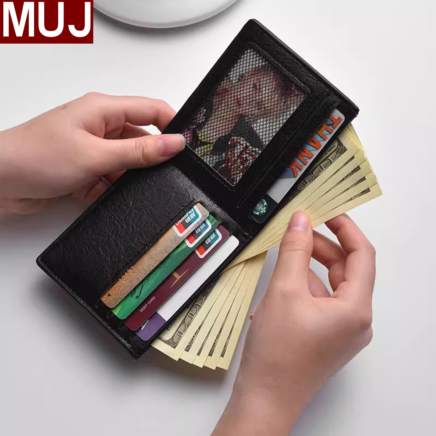 日本无印MUJ轻奢男钱包短款大容量新款轻薄多卡位卡包一体零钱包