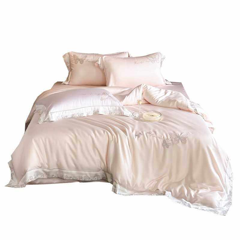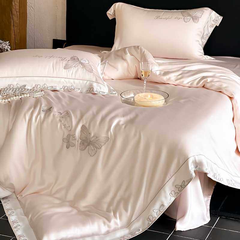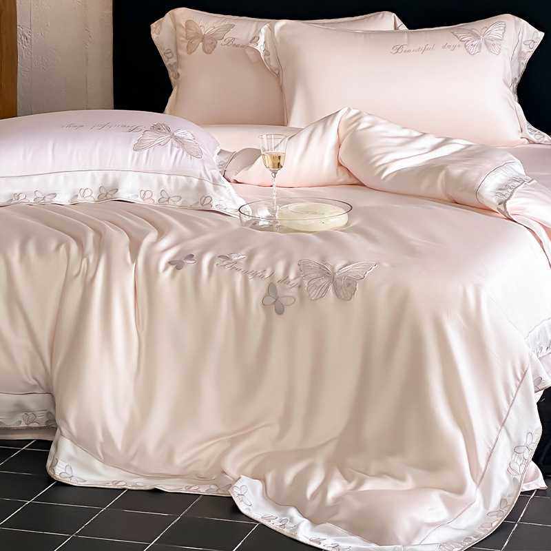 夏季凉感少女心床上四件套蝴蝶刺绣被套床单公主风高级感床品