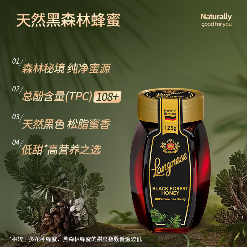 琅尼斯小玻璃瓶黑森林松树蜂蜜便携装德国原装进口天然伴手礼蜂蜜