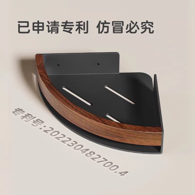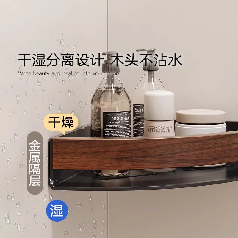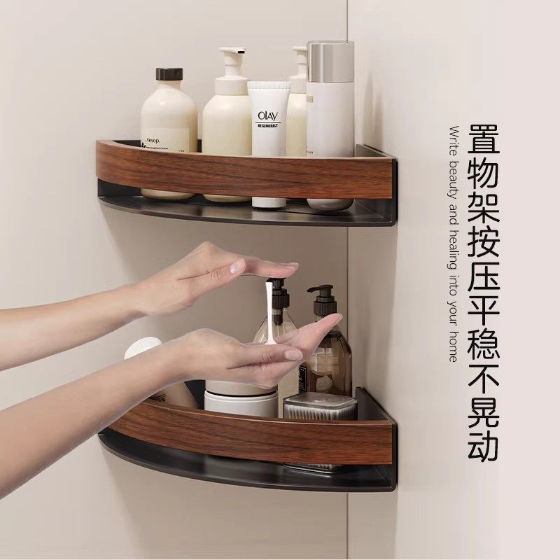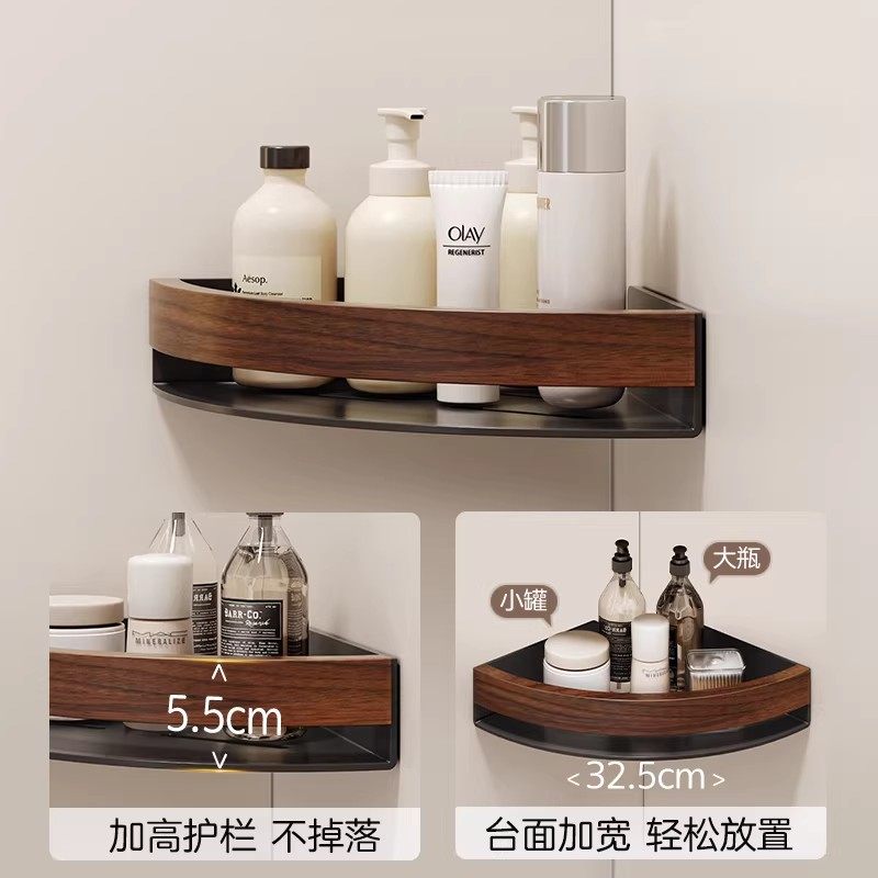 浴室卫生间置物架免打孔厕所洗手间洗漱台淋浴房胡桃木收纳三角架