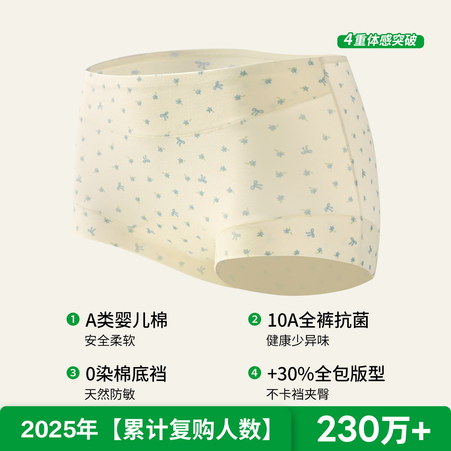 草本初色妇炎洁内裤女2025新款中高腰加长纯棉底裆无痕抗菌三角裤