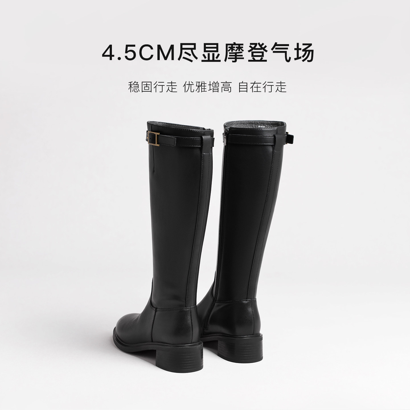 H55女鞋继承者2025冬季新款大腿围显瘦长靴皮带扣马靴百搭骑士靴