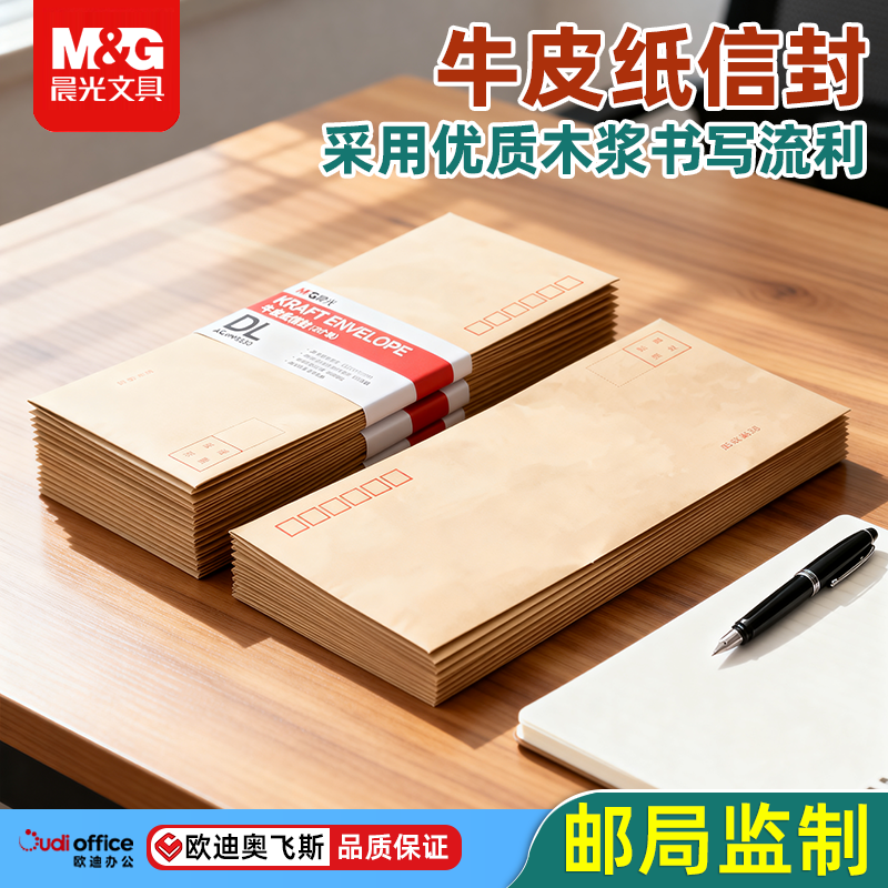 晨光DL牛皮纸信封AGWN8530 20/40/60只装 加厚防潮邮局标准办公用品财务发票袋工资袋合同文件收纳企业个人用