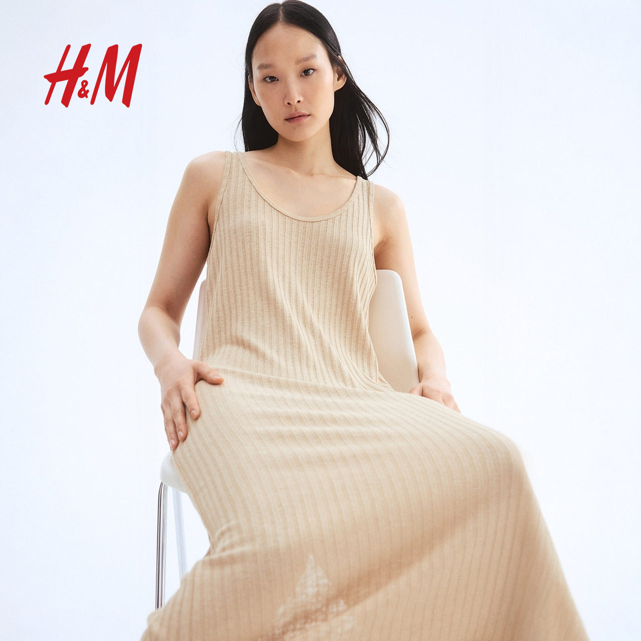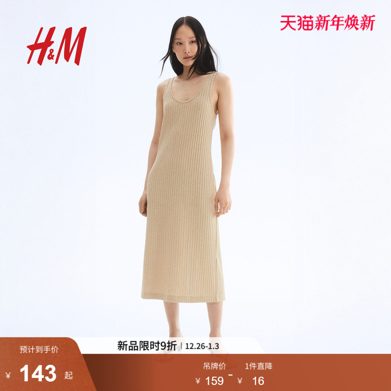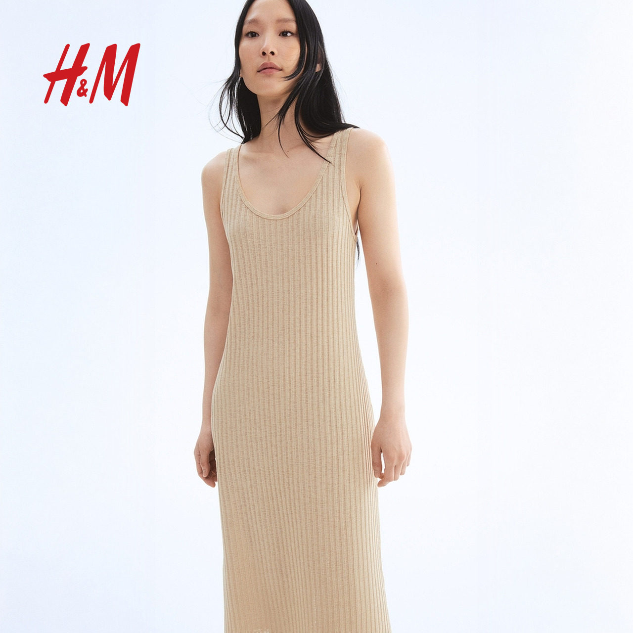 HM女装背心吊带连衣裙春季新款圆领针织连身裙1290595