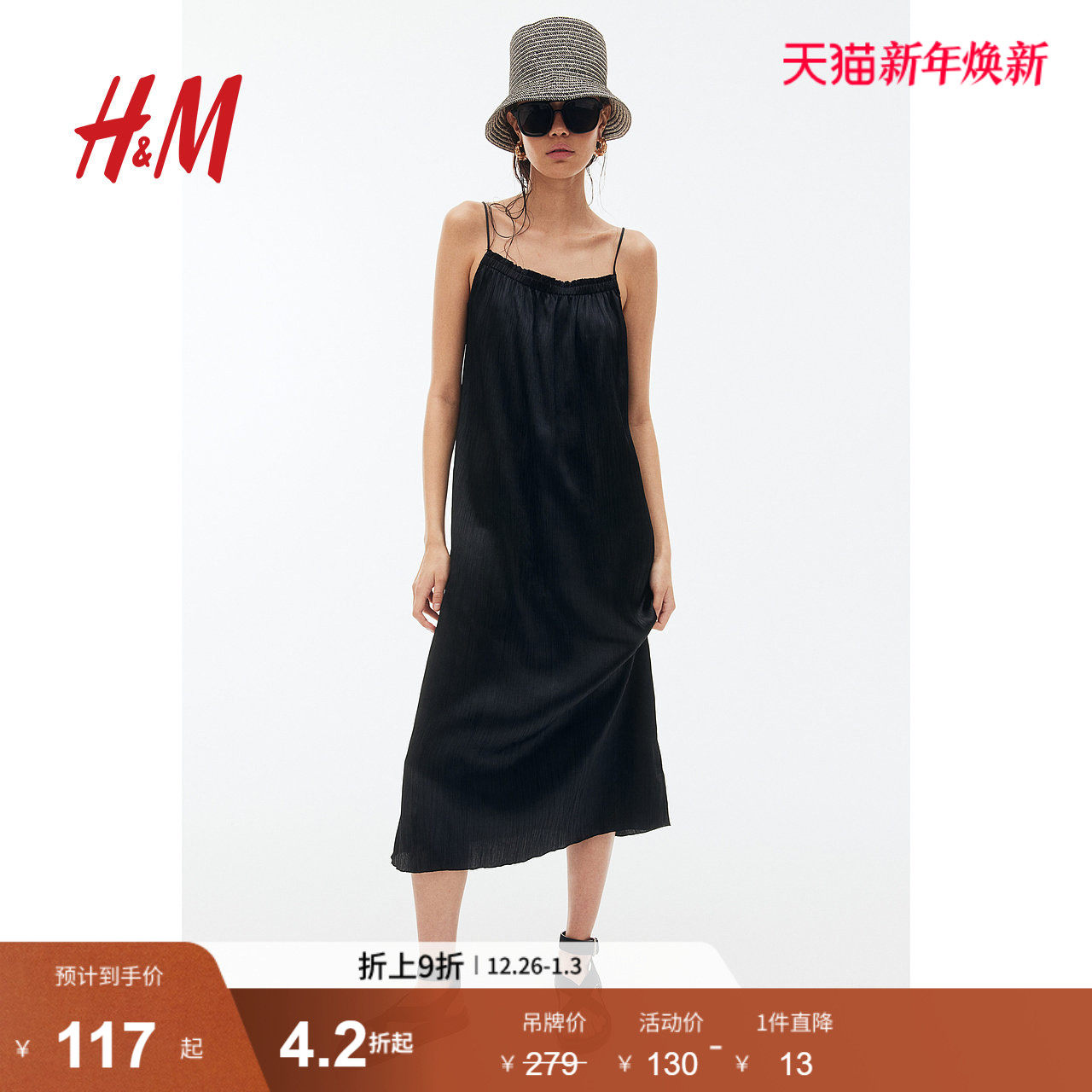 HM女装背心吊带连衣裙冬季优雅舒适方领修身锻质连身裙1235183
