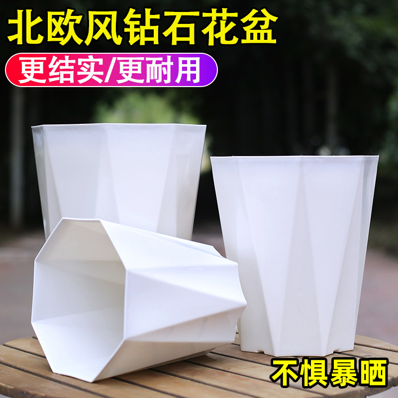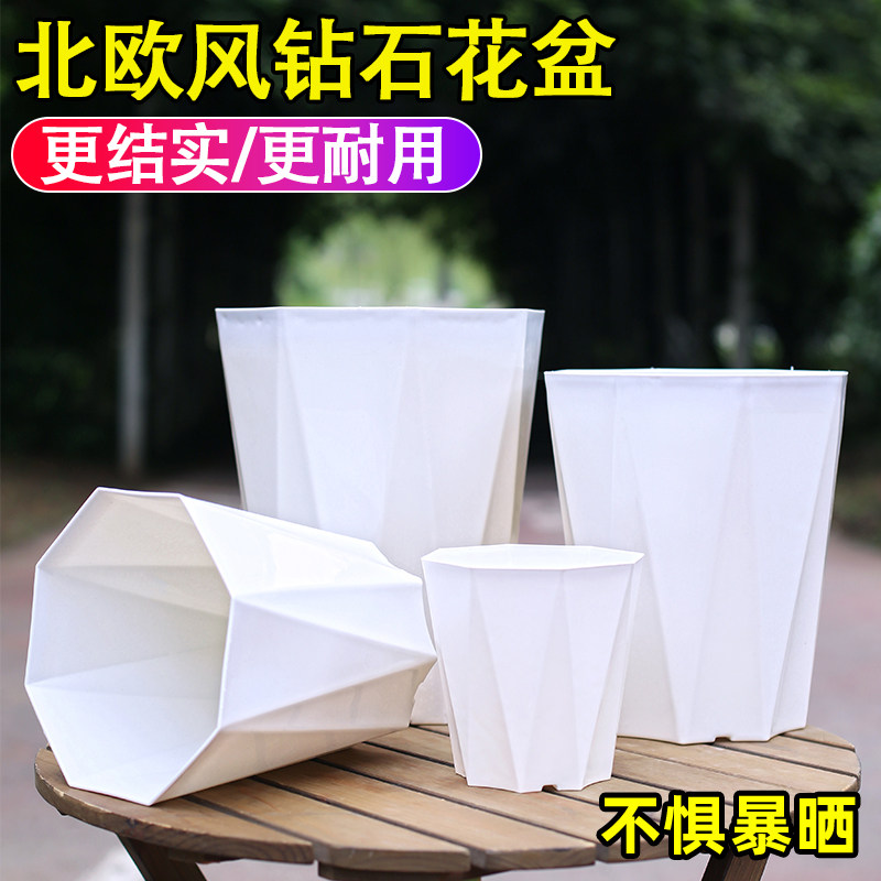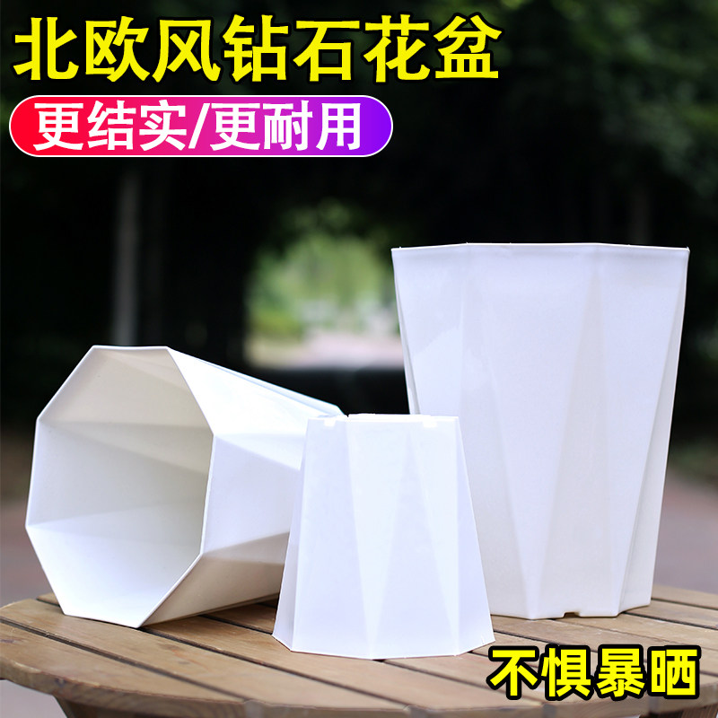 简约北欧风钻石八角花盆加厚耐用控根透气耐摔耐晒不闷根钻石花盆