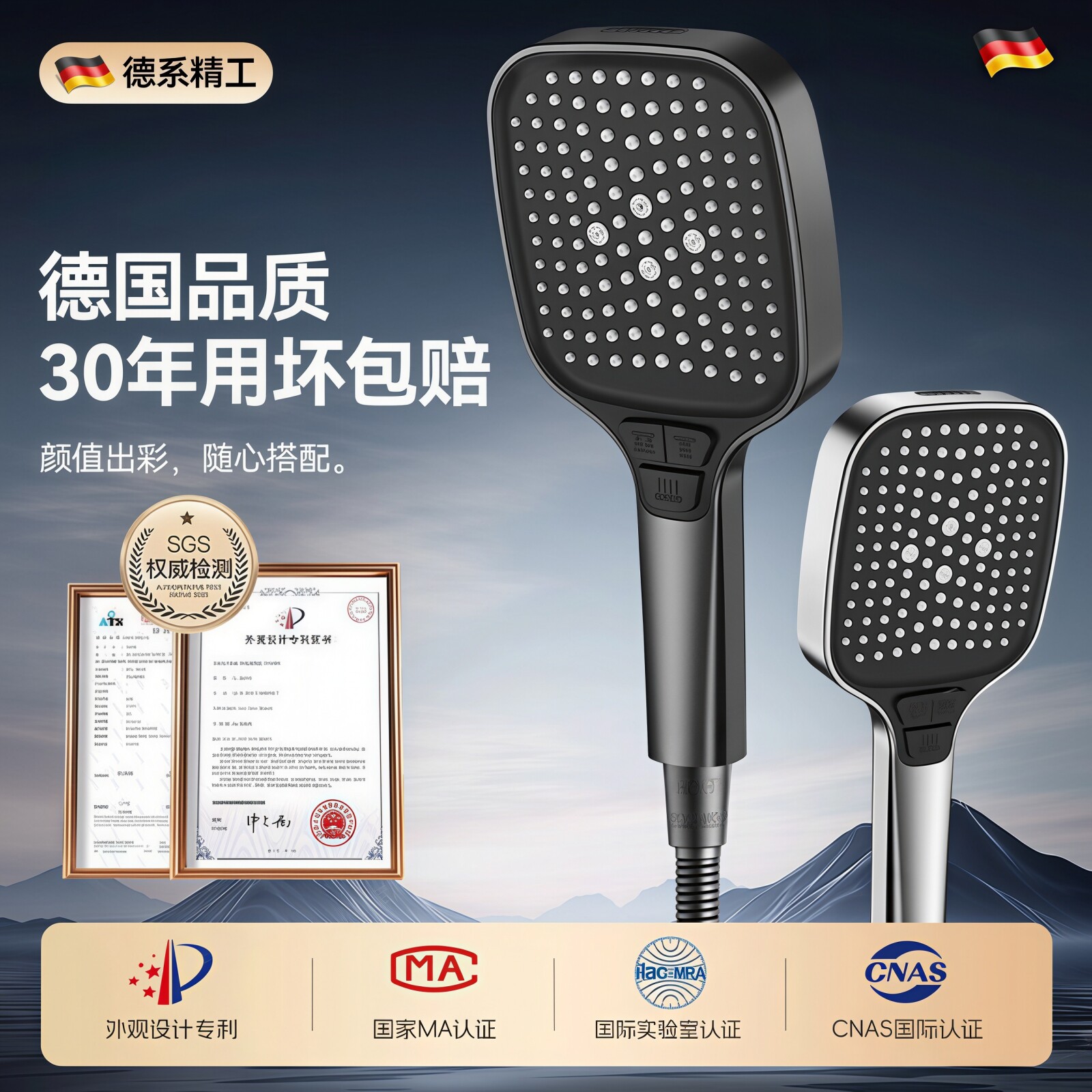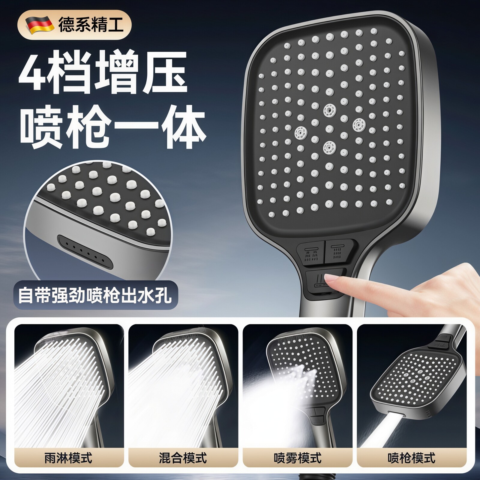 德国通用增压花洒喷头手持水龙头洗澡淋雨头套装沐浴淋蓬头通用