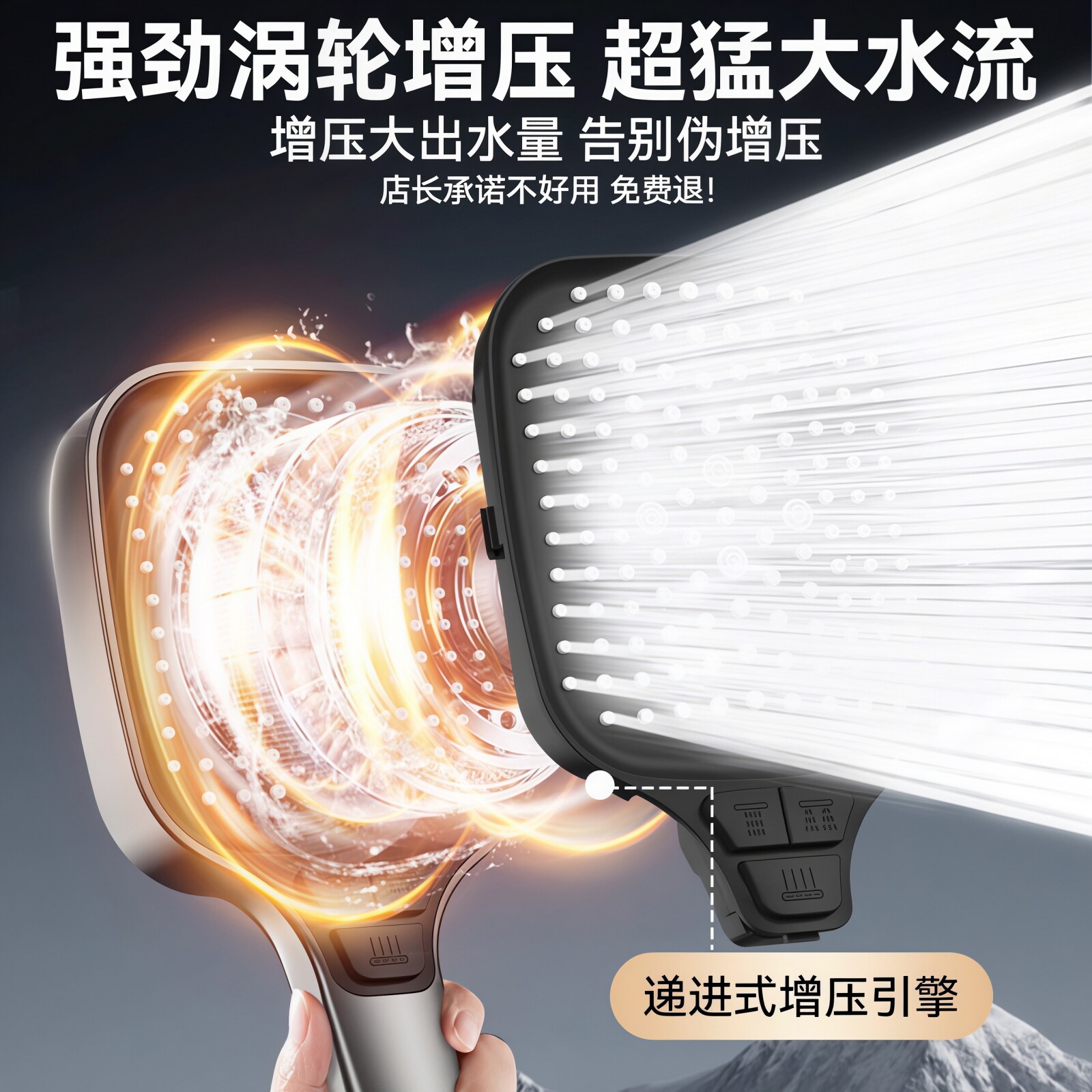 增压花洒方形大面板喷头淋浴超强涡轮浴室洗澡家用浴霸莲蓬头套装