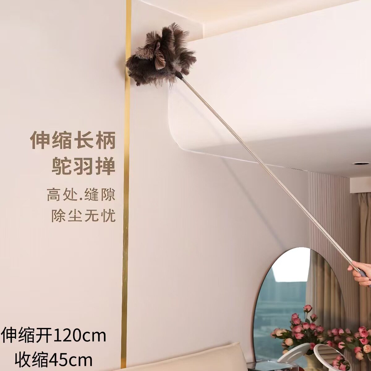 伸缩鸵鸟毛掸子家用除尘不掉毛扫灰掸加长手柄高颜值掸刷神器加密